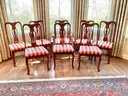 These chairs are not terribly old, but they’re good solid would queen and style chairs with an open splat in the back. Sturdy chairs with very nice upholstery. Two arms and six side chairs