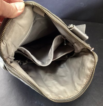 * the sixth handbag is also by the Baggallini company, and is in a charcoal gray waterproof material with a subtle pattern on the material. A very clean interior,
