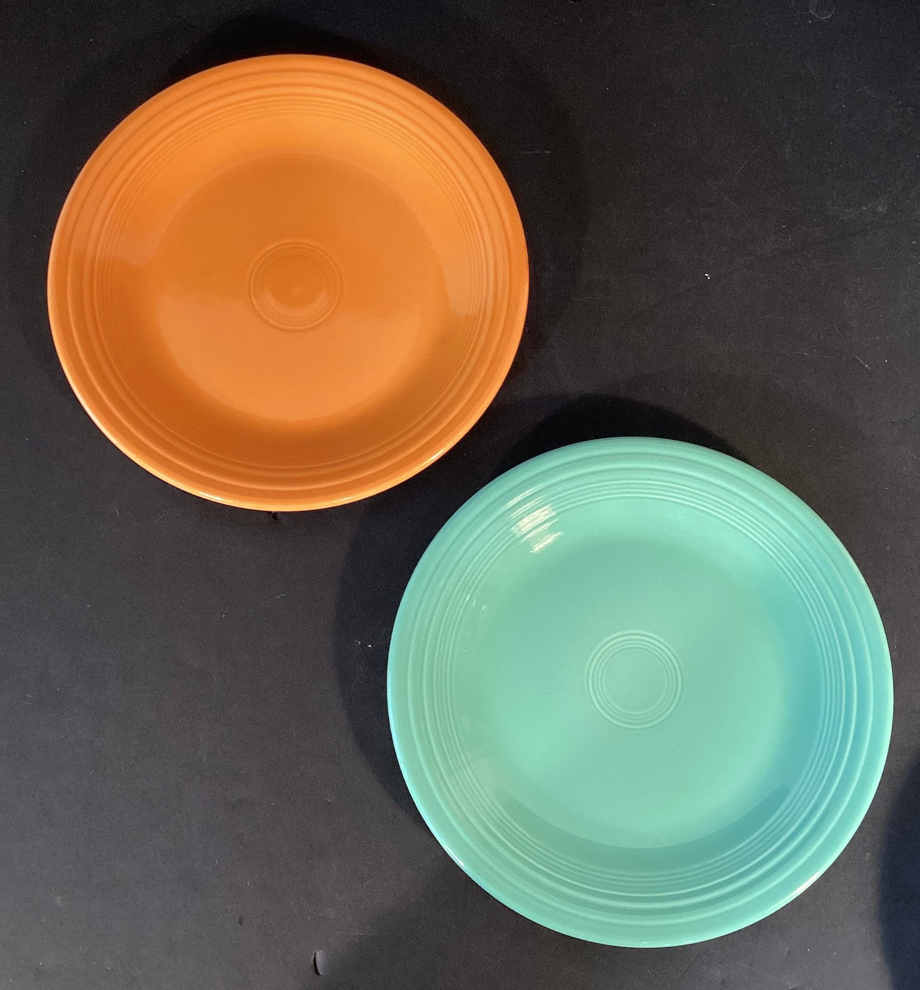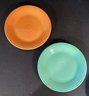* (1) turquoise blue plate, (1) sky blue plate, (1) rose pink plate, (1) midnight blue plate, (2) tangerine orange plates, (1) cherry red plate, and (1) Miami Green plate.