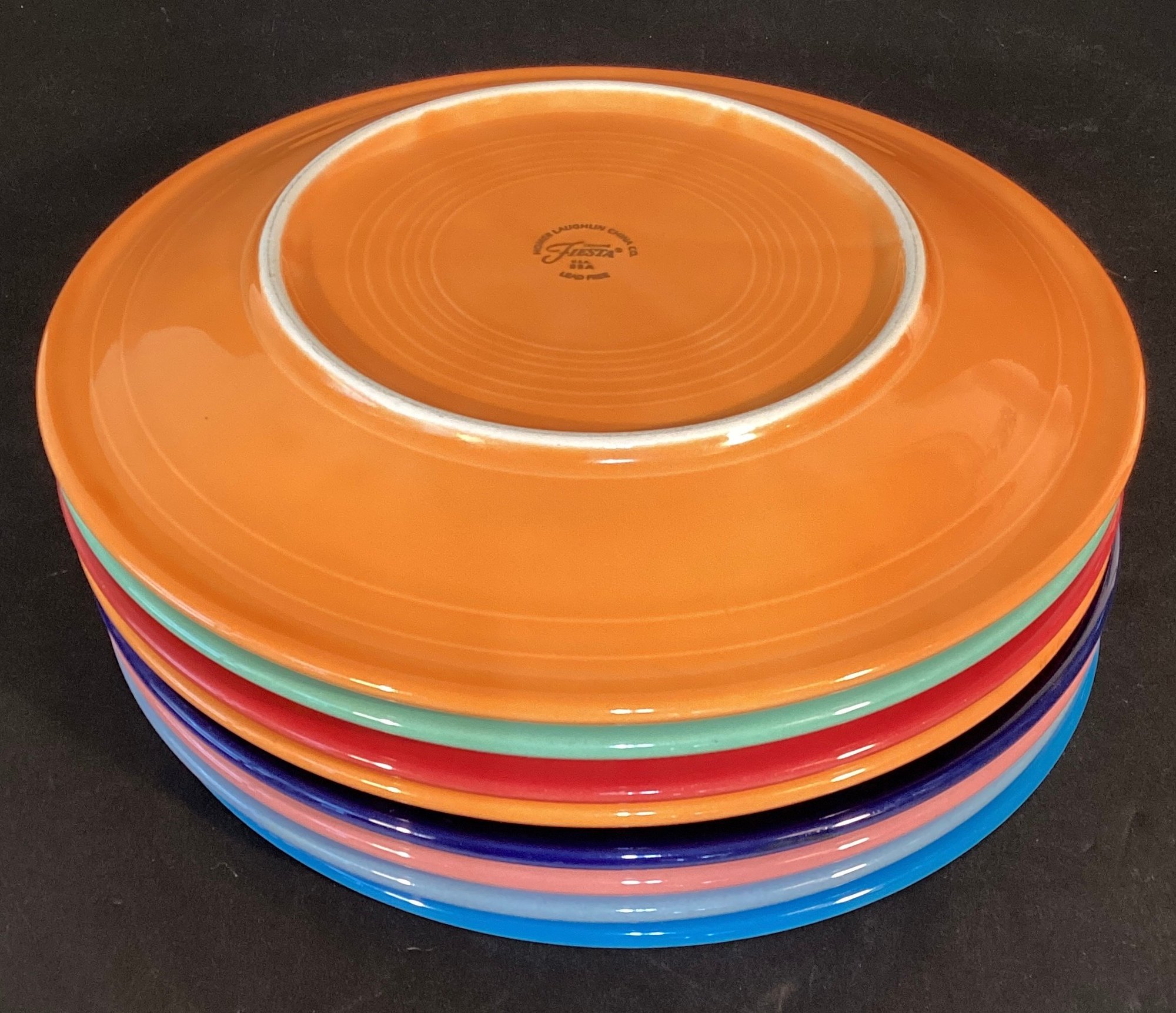 Here we have five vintage fiesta plates in a riot of colors for your home. All the fiesta wear plates are led free and were made by the Holmes Laughlin company, United States.
