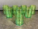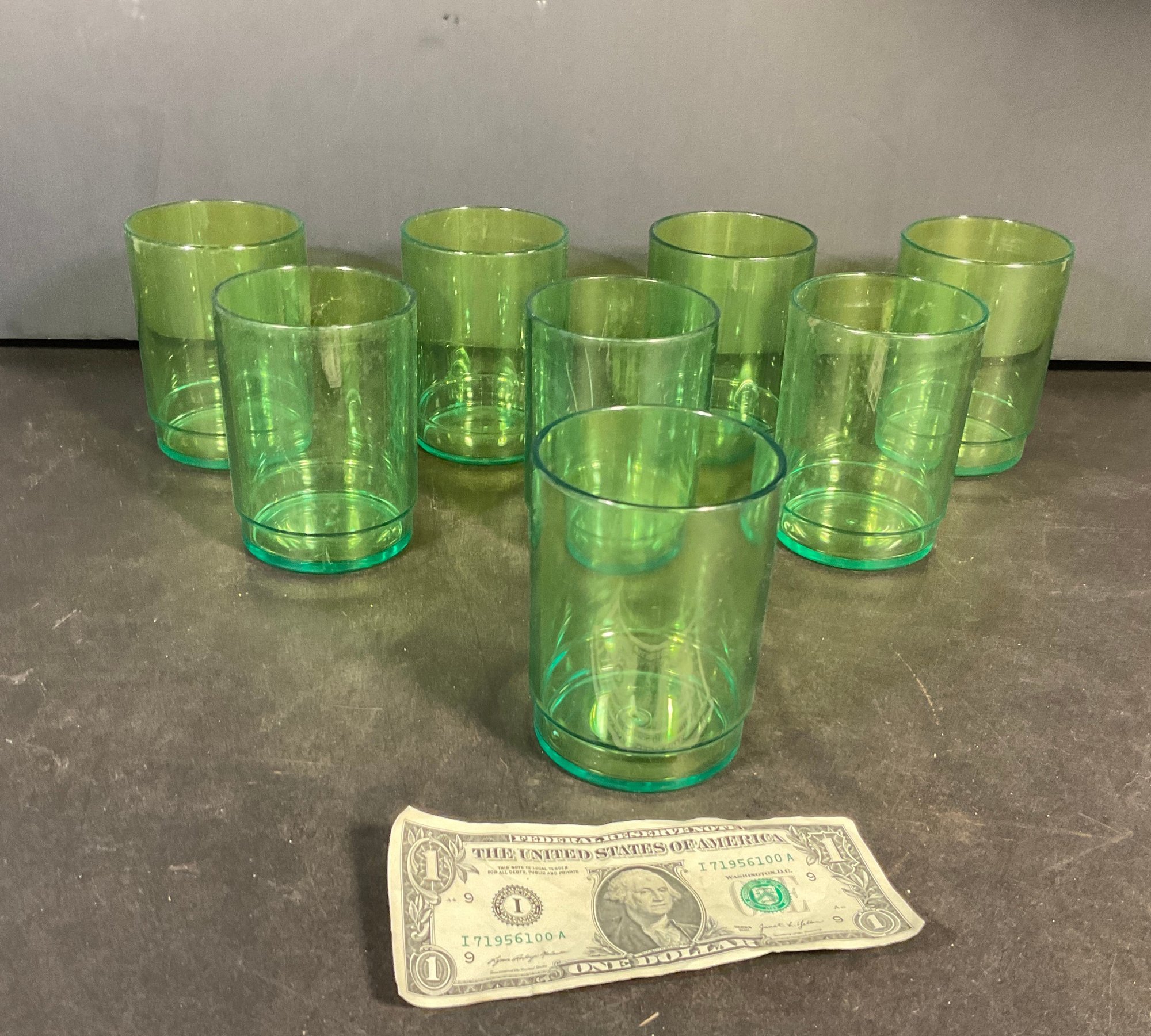 All 8 of these glasses are are not stamped with any signatures ready to use with age-appropriate wear great color, interesting mid-century modern design
