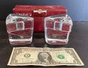Each item is very substantial in weight, and each measures approximately 2.50” at the base 3.00” in height and with its unusual shape, graces 3.50” across the top of each candle holder.
