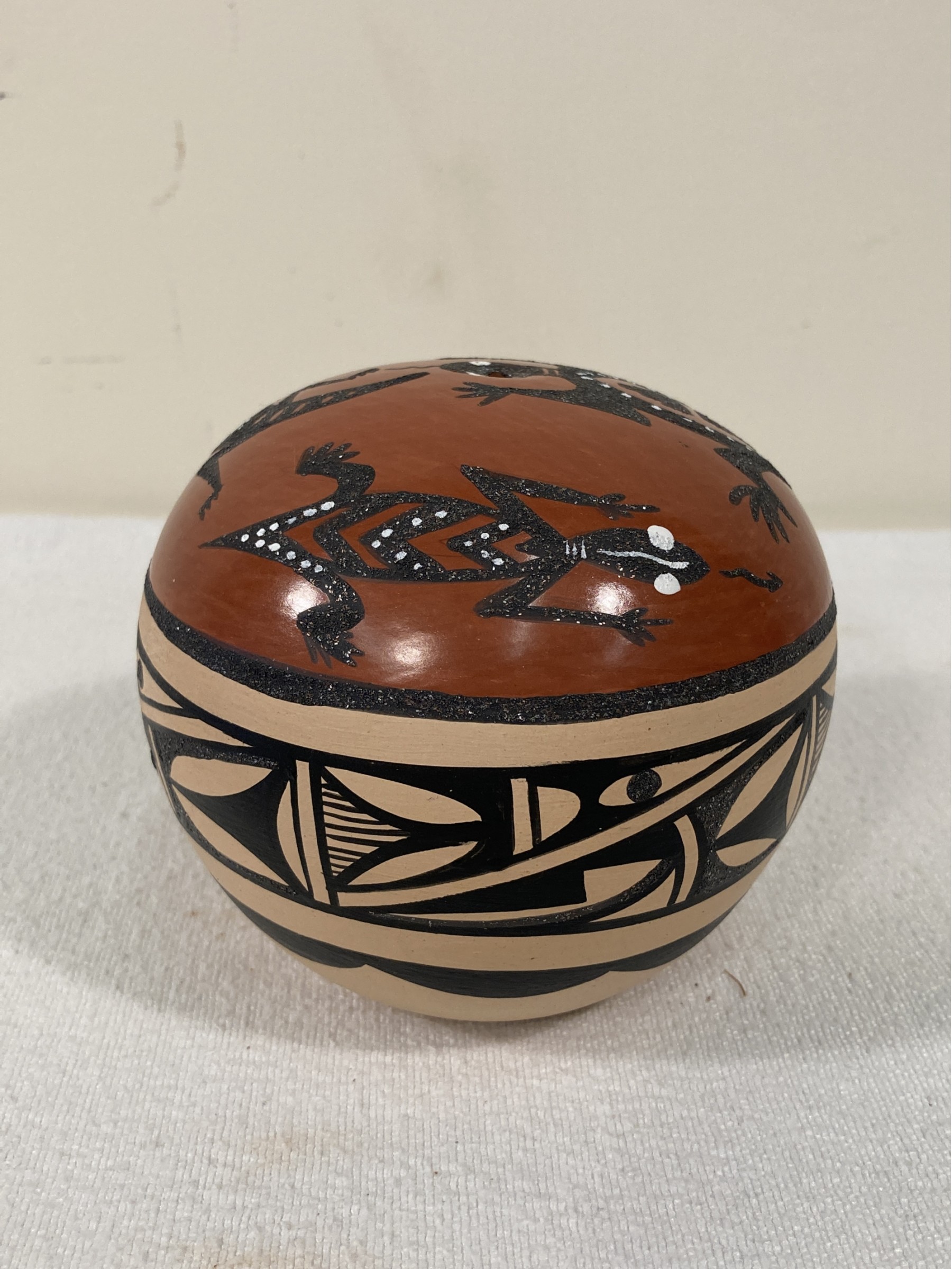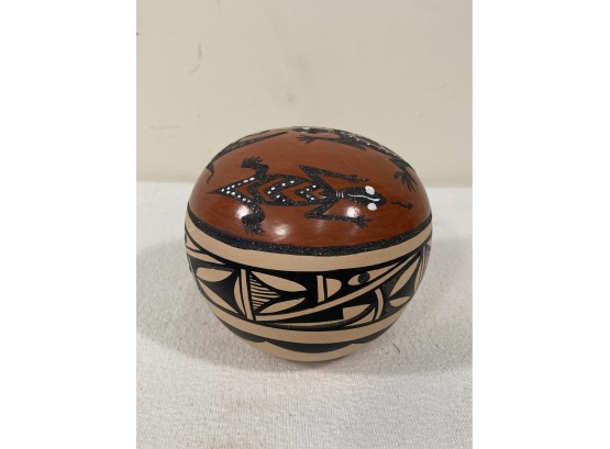 Selling an Acoma Indian pottery seed pot with paint decoration. Signed on the bottom Mcinana Temel.