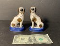 Made in England around 1850 to 1870 these two pottery dogs are in very good condition. Good color no chips no repairs. There is some crazing glaze which is to be expected on this type of pottery. Unmarked on the bottom.