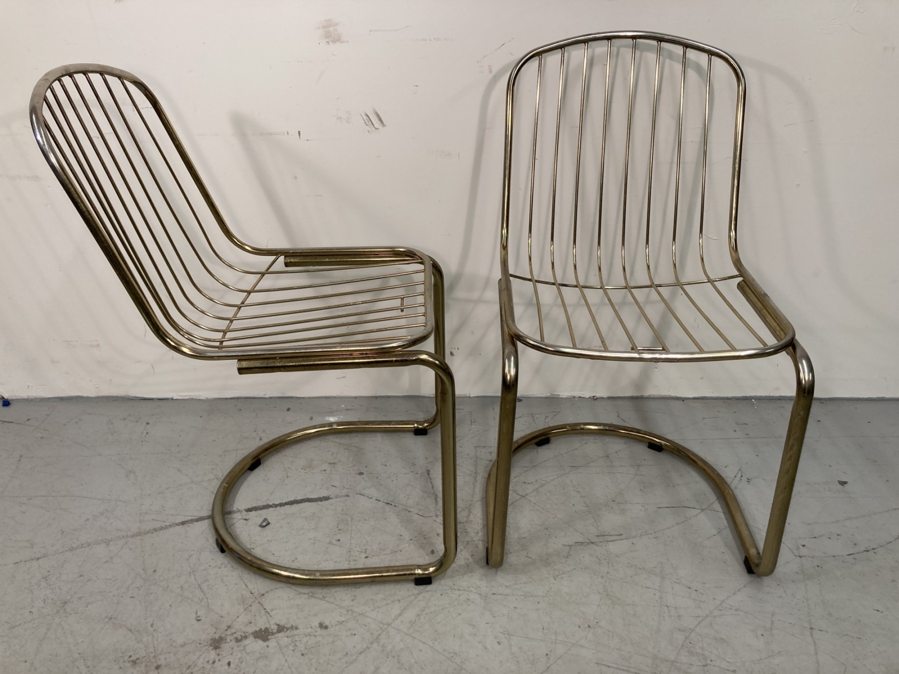 Selling a pair of mid-century modern brass cantilever chairs in the style of Hollywood regency. C. 1970s.