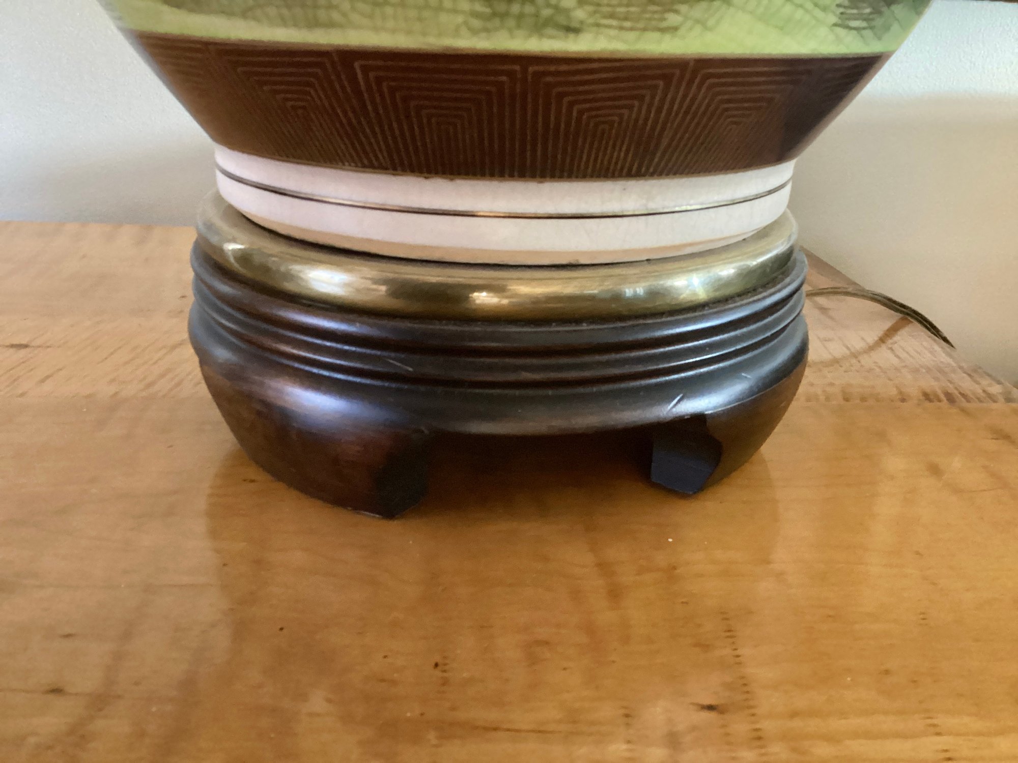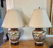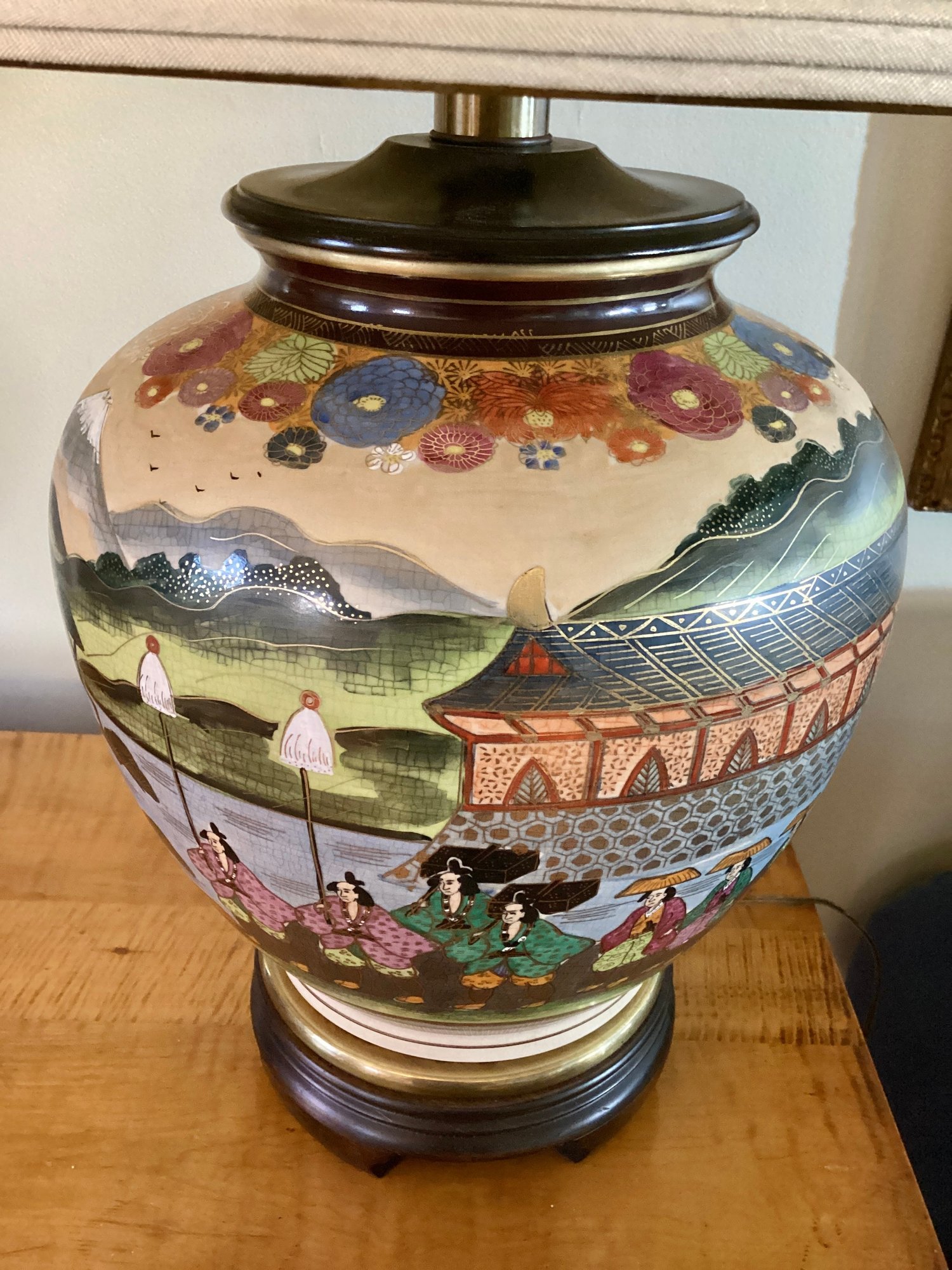 a nice large impressive pair of Asian ceramic lamps, hand painted scenes nice quality. Ready to use..