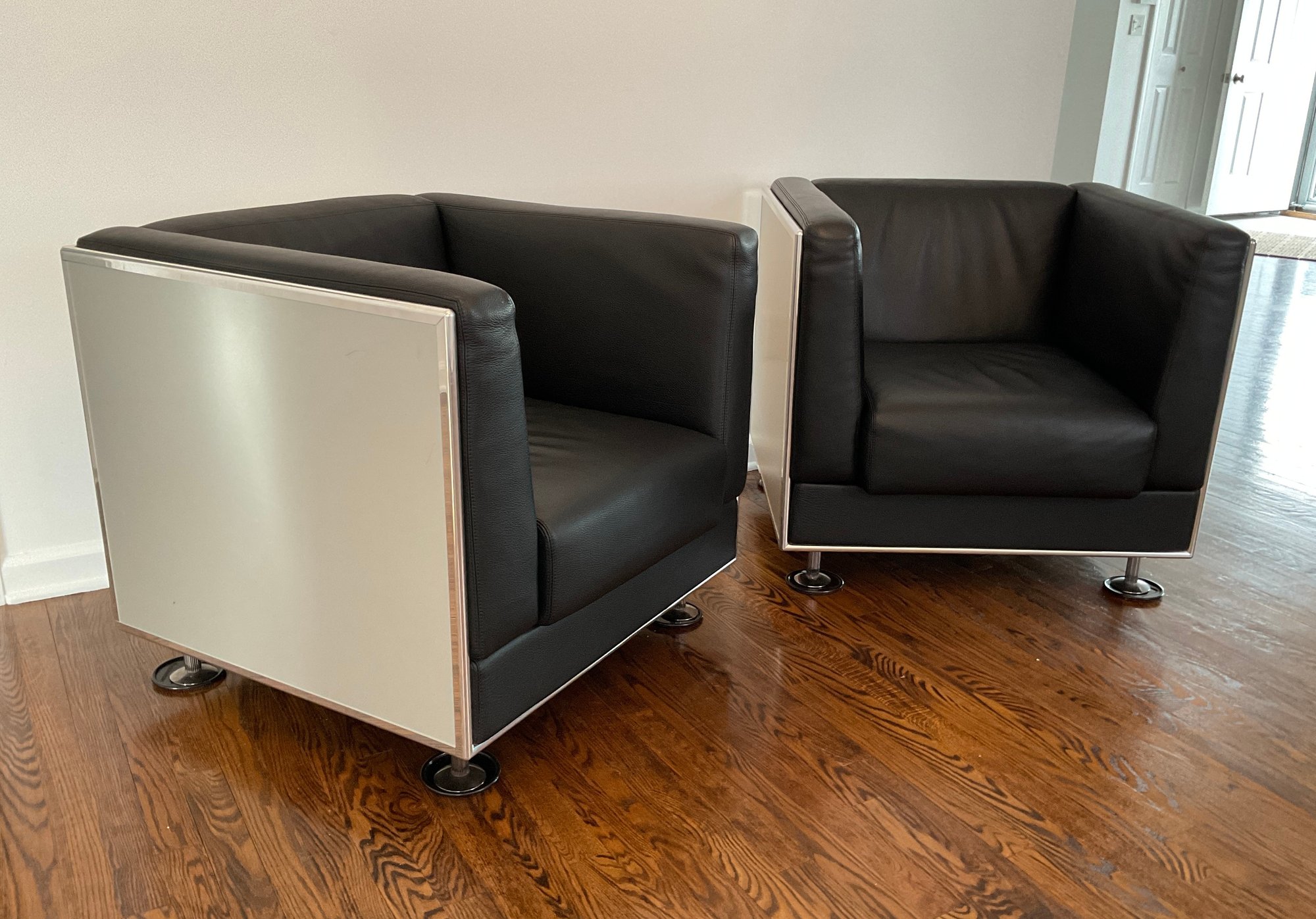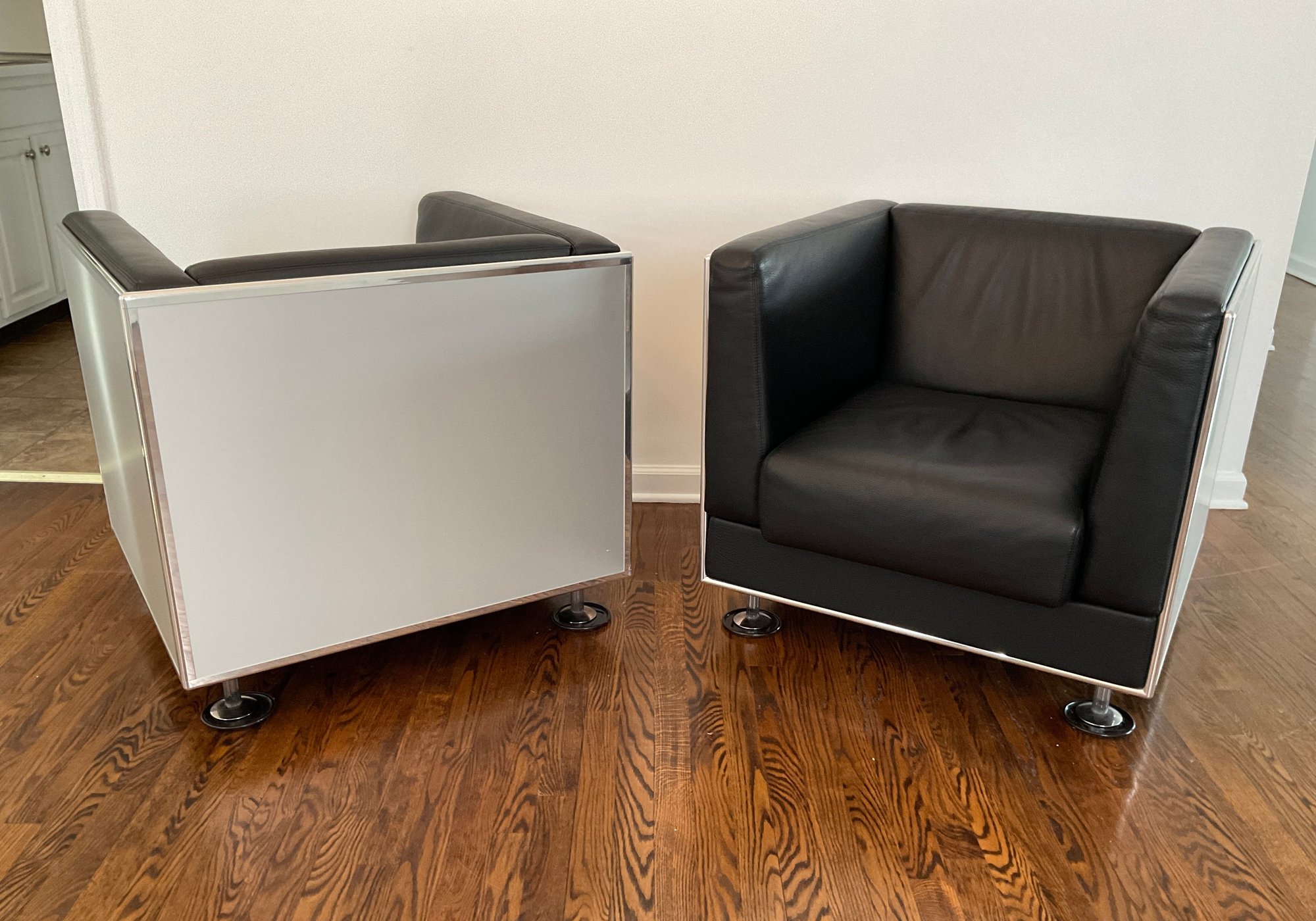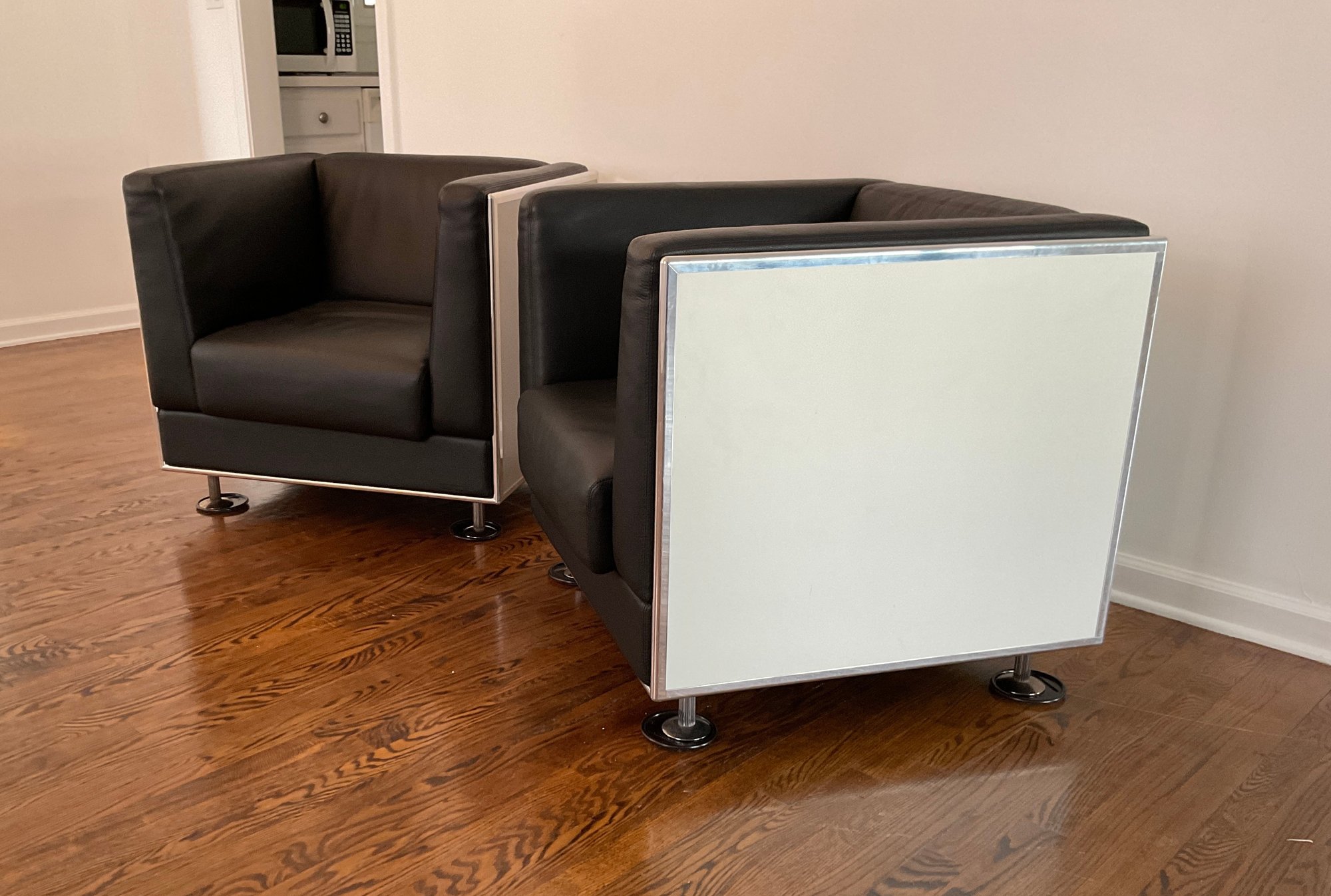 This is an original pair of armchairs designed by Kunihide Oshinomi well known and celebrated designer from Japan. This was one of his most desirable designs and it was for Matteo Grassi Vinterior .