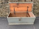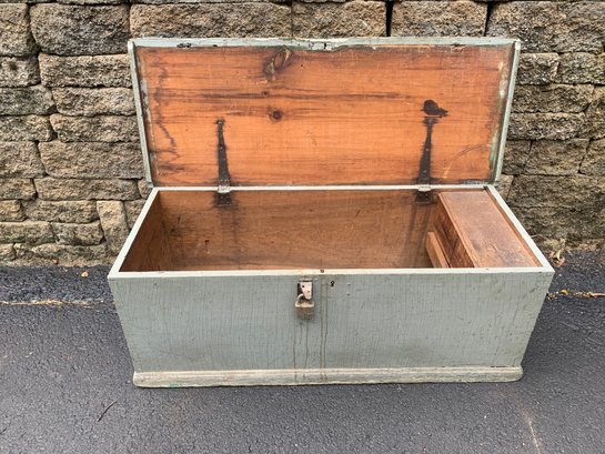 This is a very nice original American antique pine blanket box with original strap hinges. Has found condition and a seller. The box is 30 no rot or dry spots. Paint is old, but not original there is a paint underneath. I believe it’s blue till and drawer are a nice condition. Someone has put a lock on the front which can be taken off easily. The case is fully dovetailed and an overall very good condition.