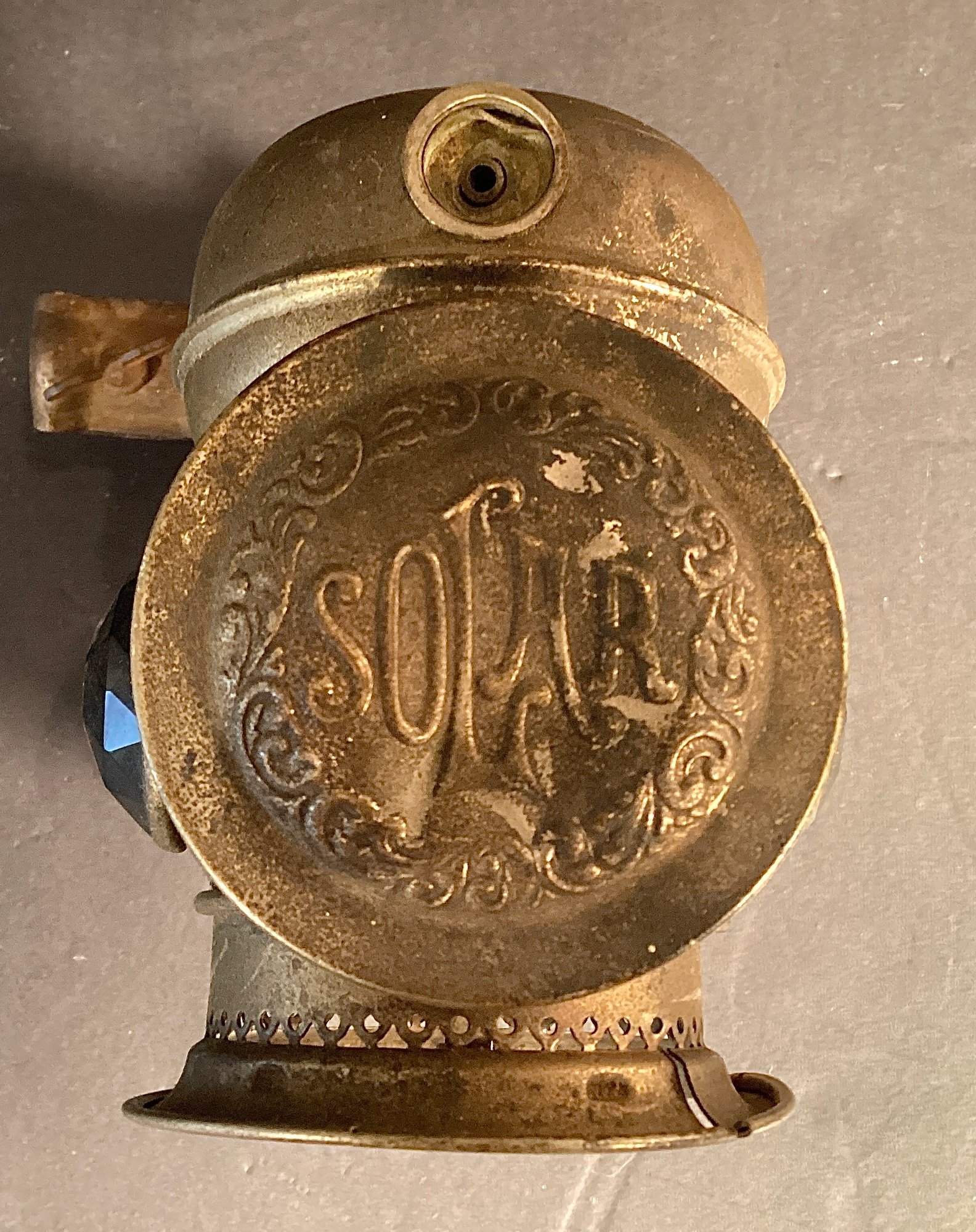 Here we have a superb antique antique bicycle lamp, by Solar.