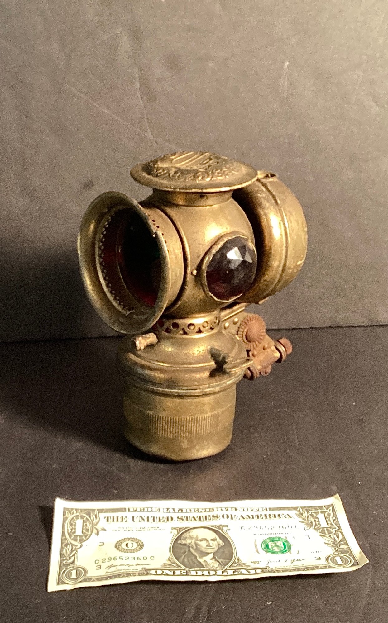 The jewels of red and green on each side and has remained in great condition, ready to come home for your collection of brass artifacts!