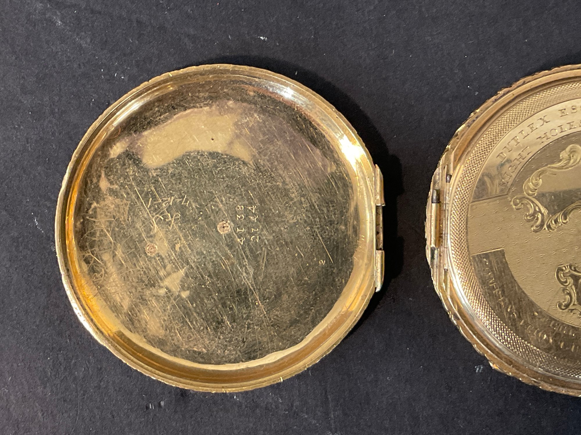 How you can see the hinge needs some attention it’s not snapped. It appears that the steel pin has moved far to the one side keeping the hinge from operating correctly. I’m guessing a very minor repair. This watch will run when you wind it