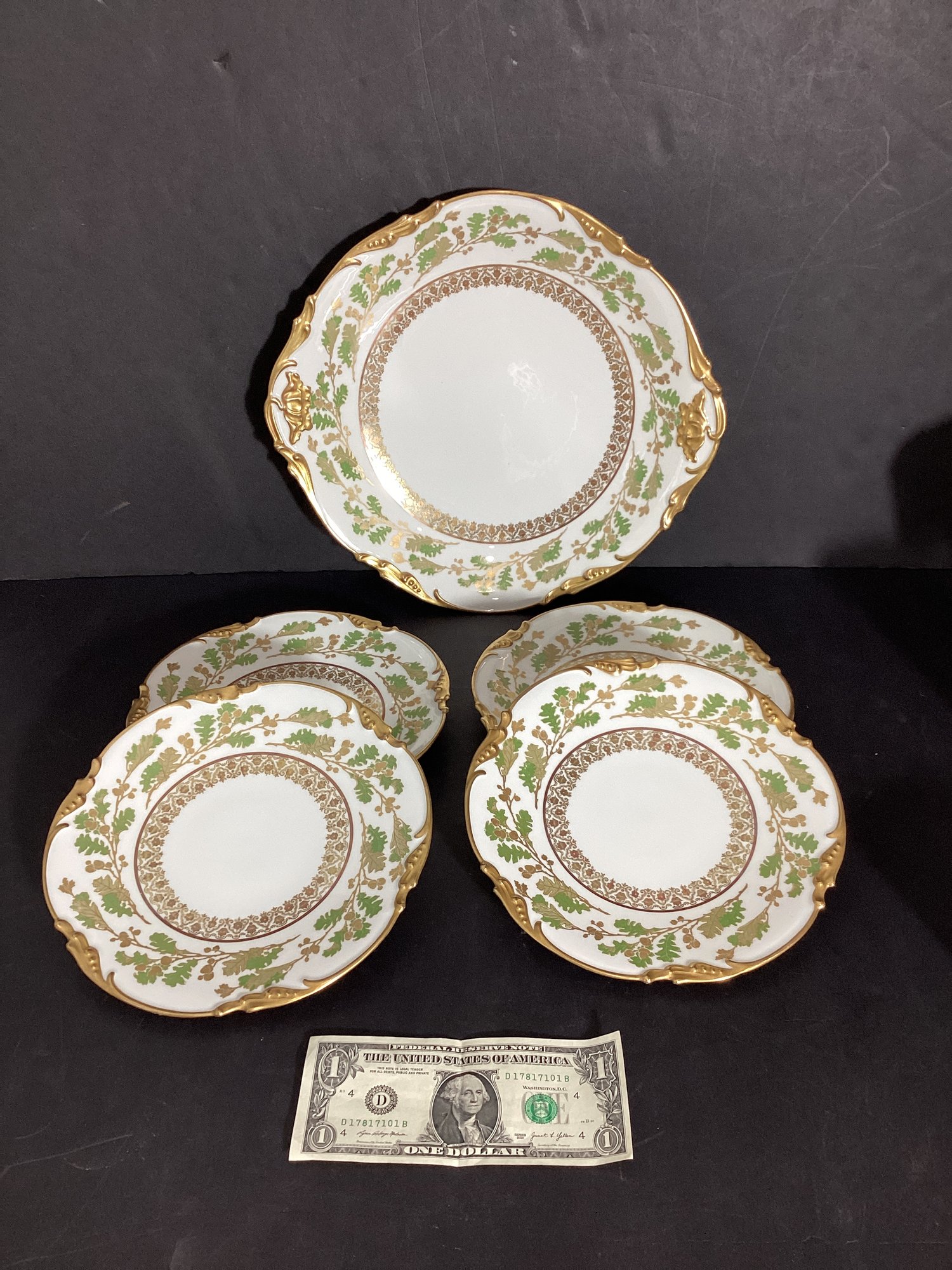 Here we have five pieces of Limoges including four dessert plates and one cookie platter.