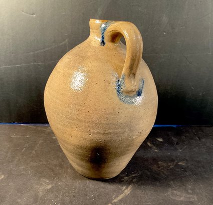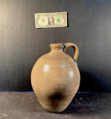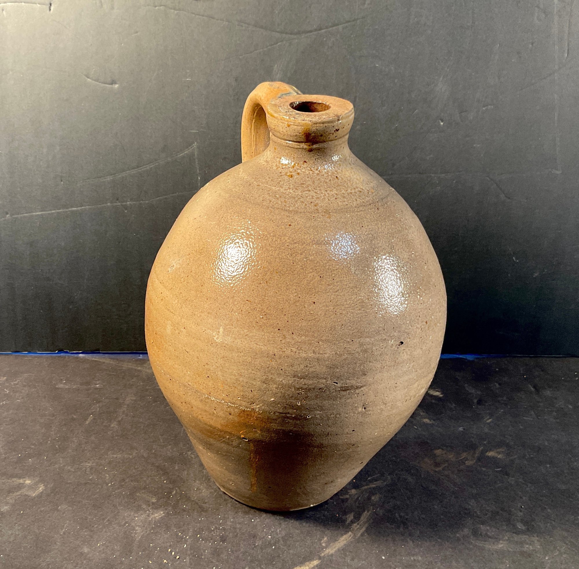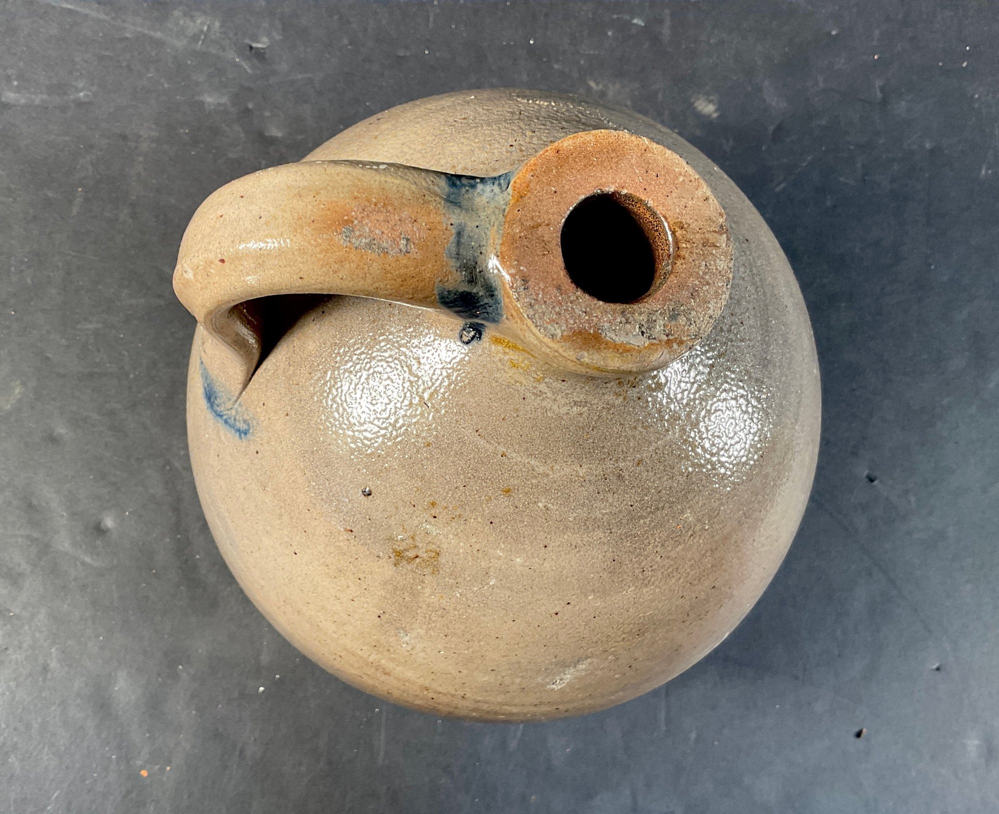 Early 1800s New England unmarked void jug. As you can see it’s been drilled for a lamp. Not a big distraction. Nice glaze nice form. Very primitive.