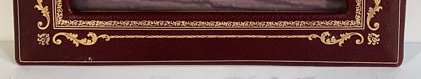 * Maroon material backing with 7 fasteners to hold photograph in place.