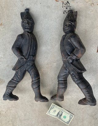 Very heavy cast iron. The dogs have been removed and they can be hung on a wall as a great early decoration. Not burnt out. Very good overall condition.