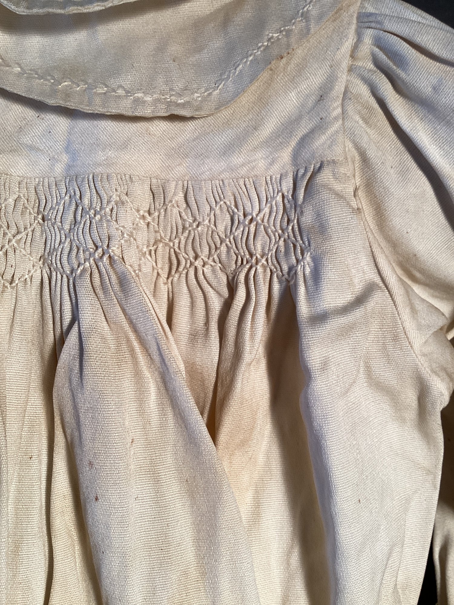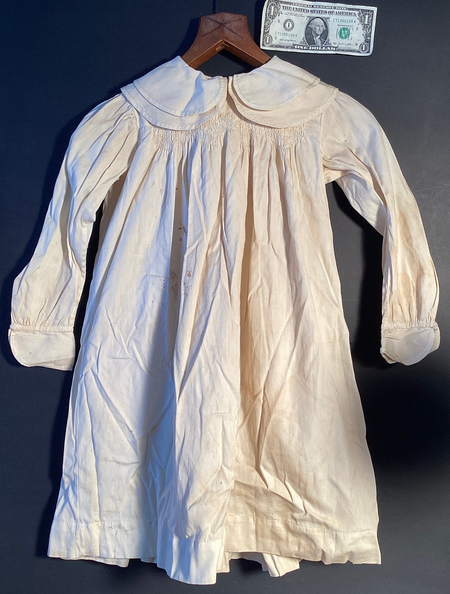 Here is an antique longer length/ long sleeve dress with hand smocking.