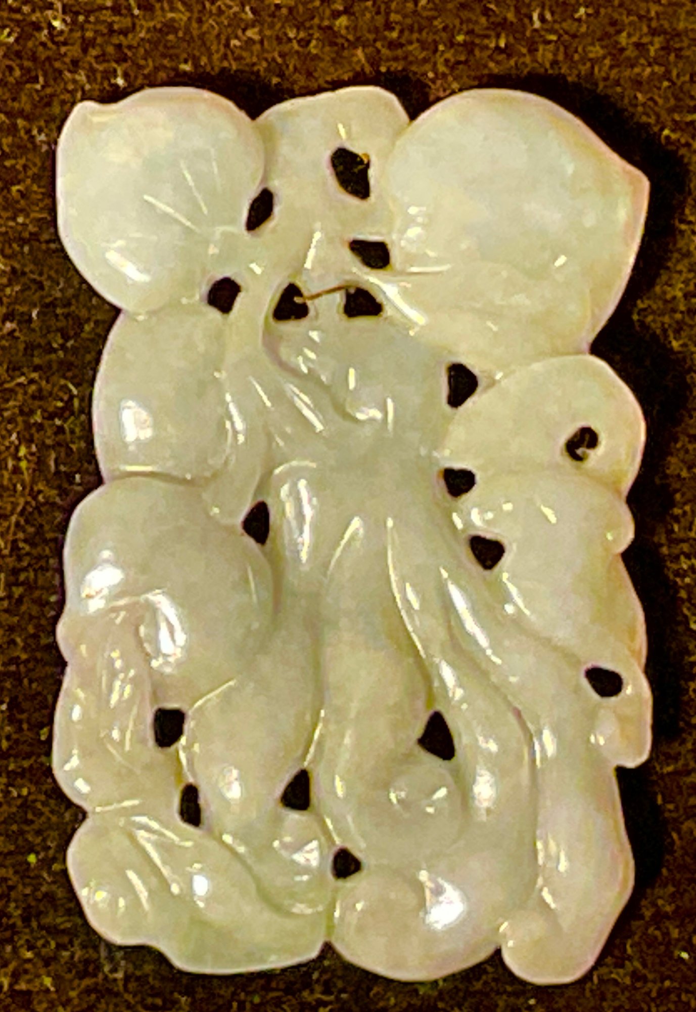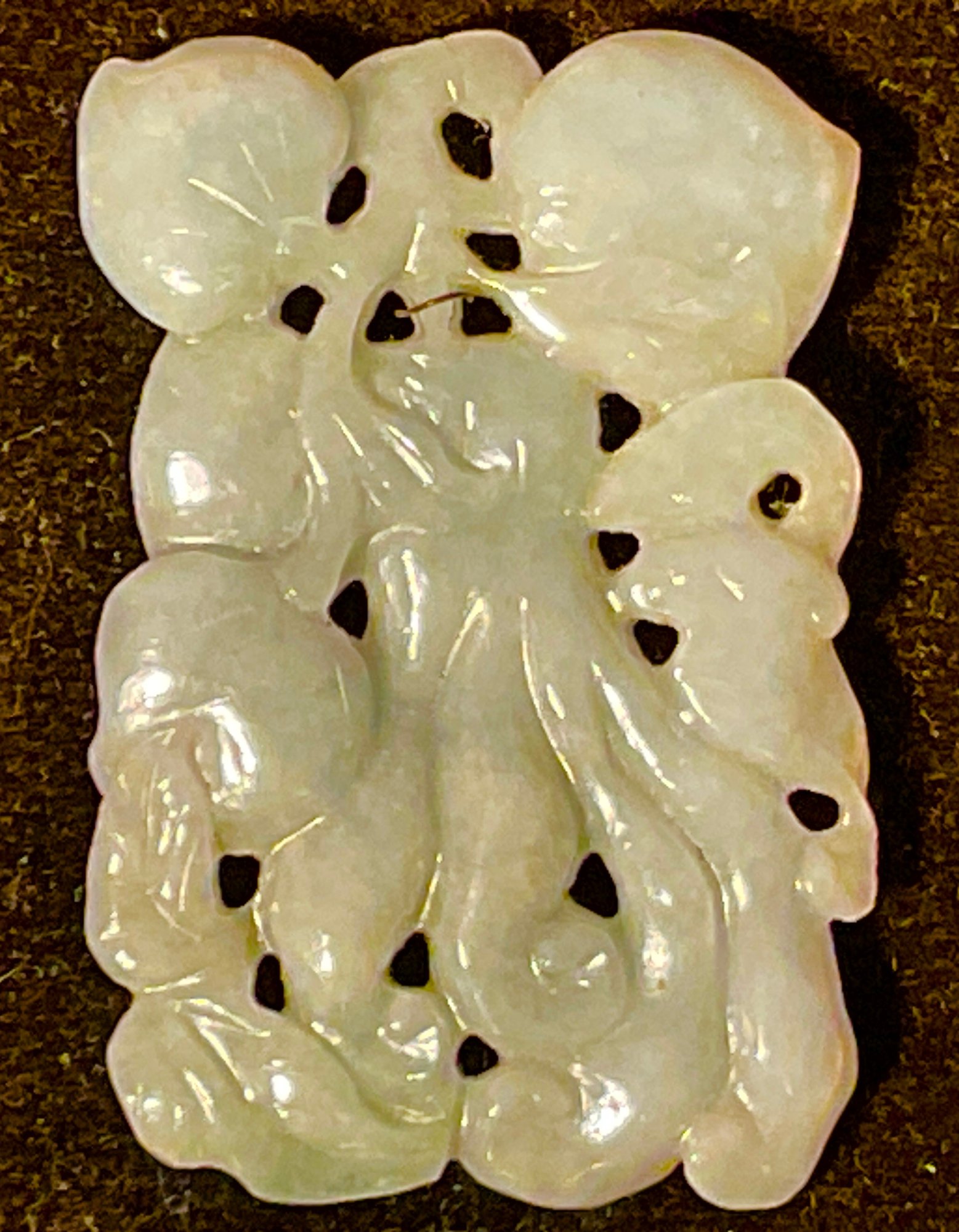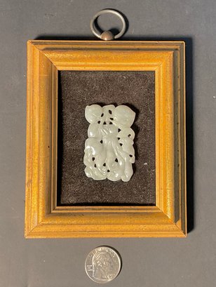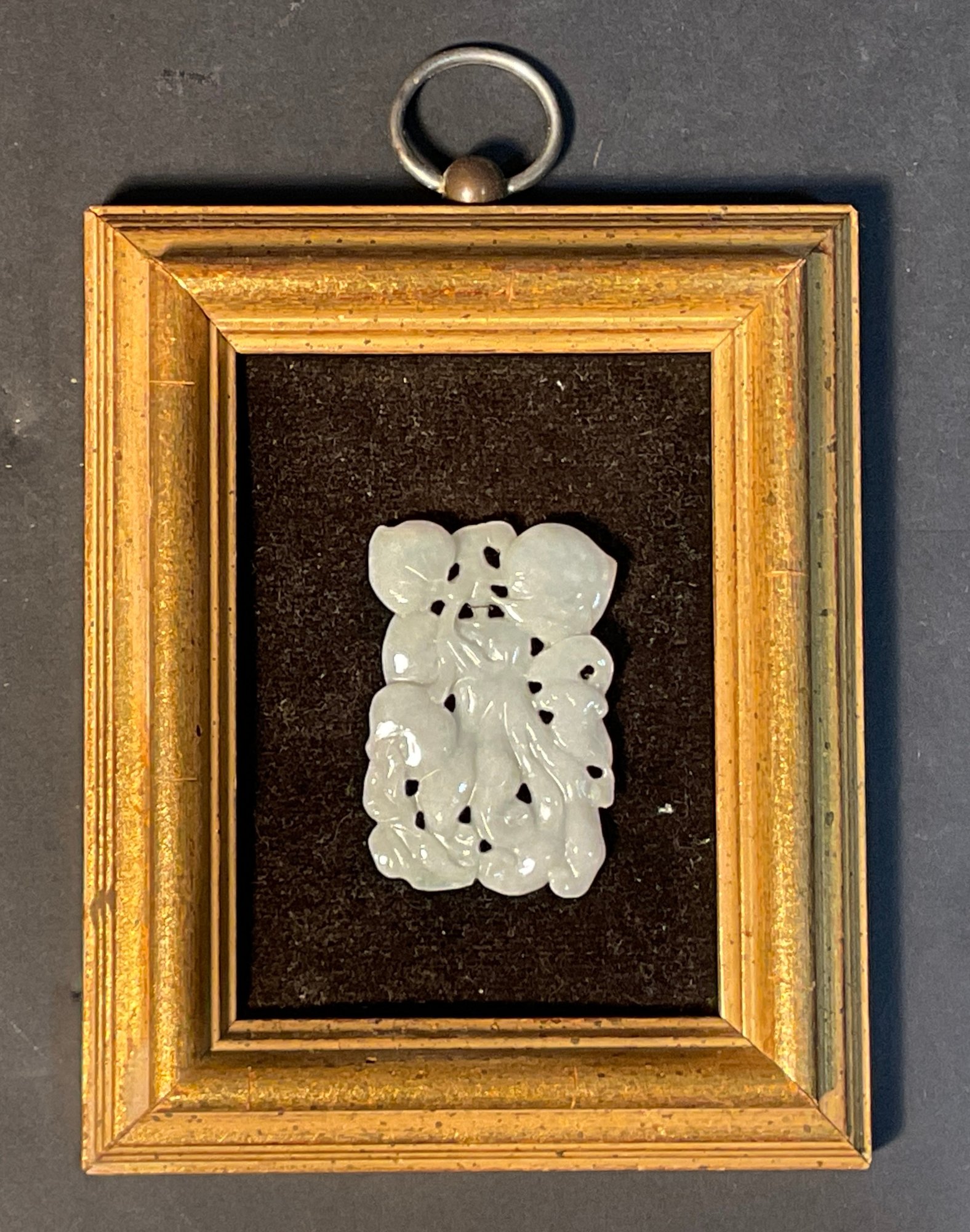 Carved peaches, carved on both sides. framed by the owner in the late 1930s. Very nice quality.