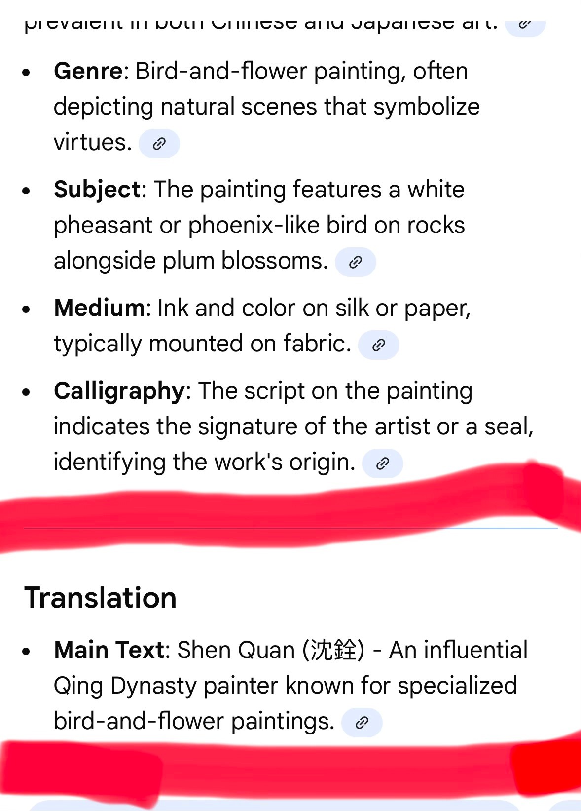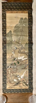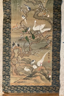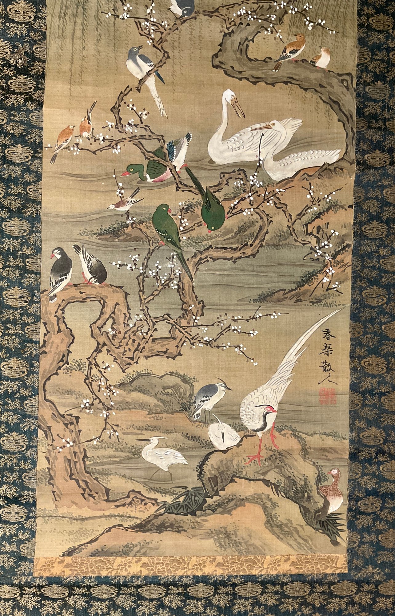 Google says this scroll is Chinese and translates to ( main text) SHEN QUAN an influential Qing dynasty painter known for specialized bird and flower paintings. See the picture (screenshot) Google. I’ve included in the description.