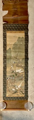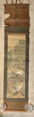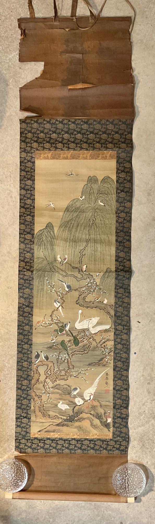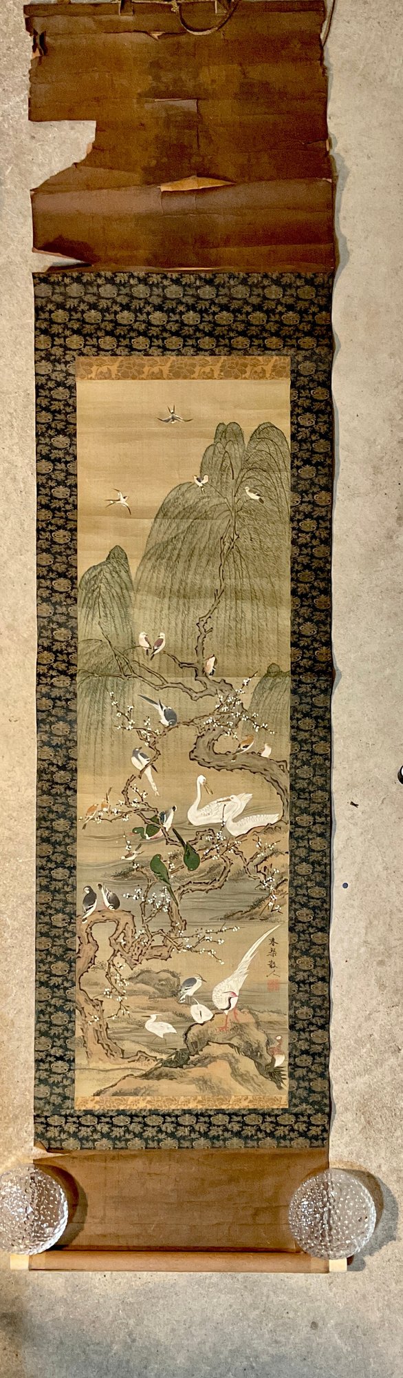 As you can see the paper at either side of the painting fabric is untouched in good condition. The paper however, will need to be replaced. The scroll