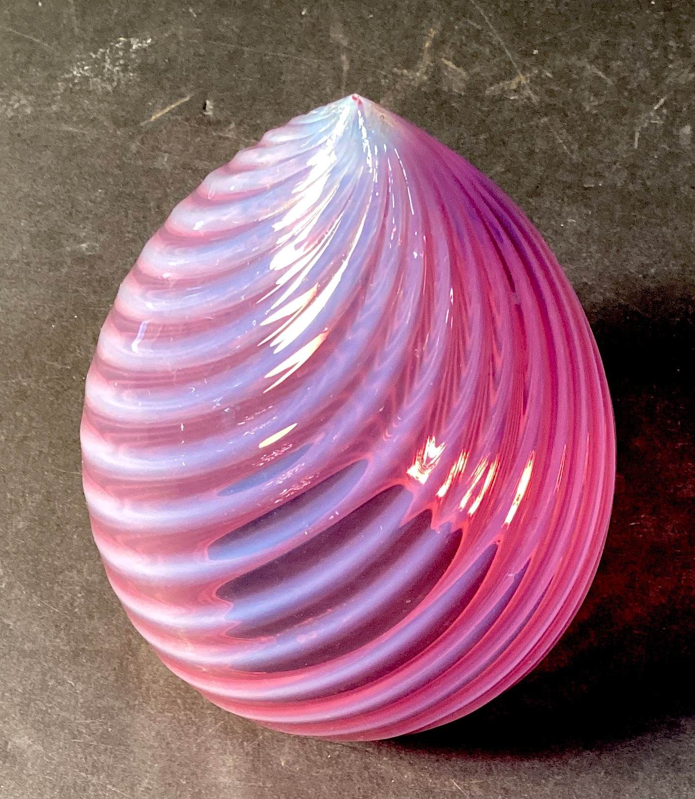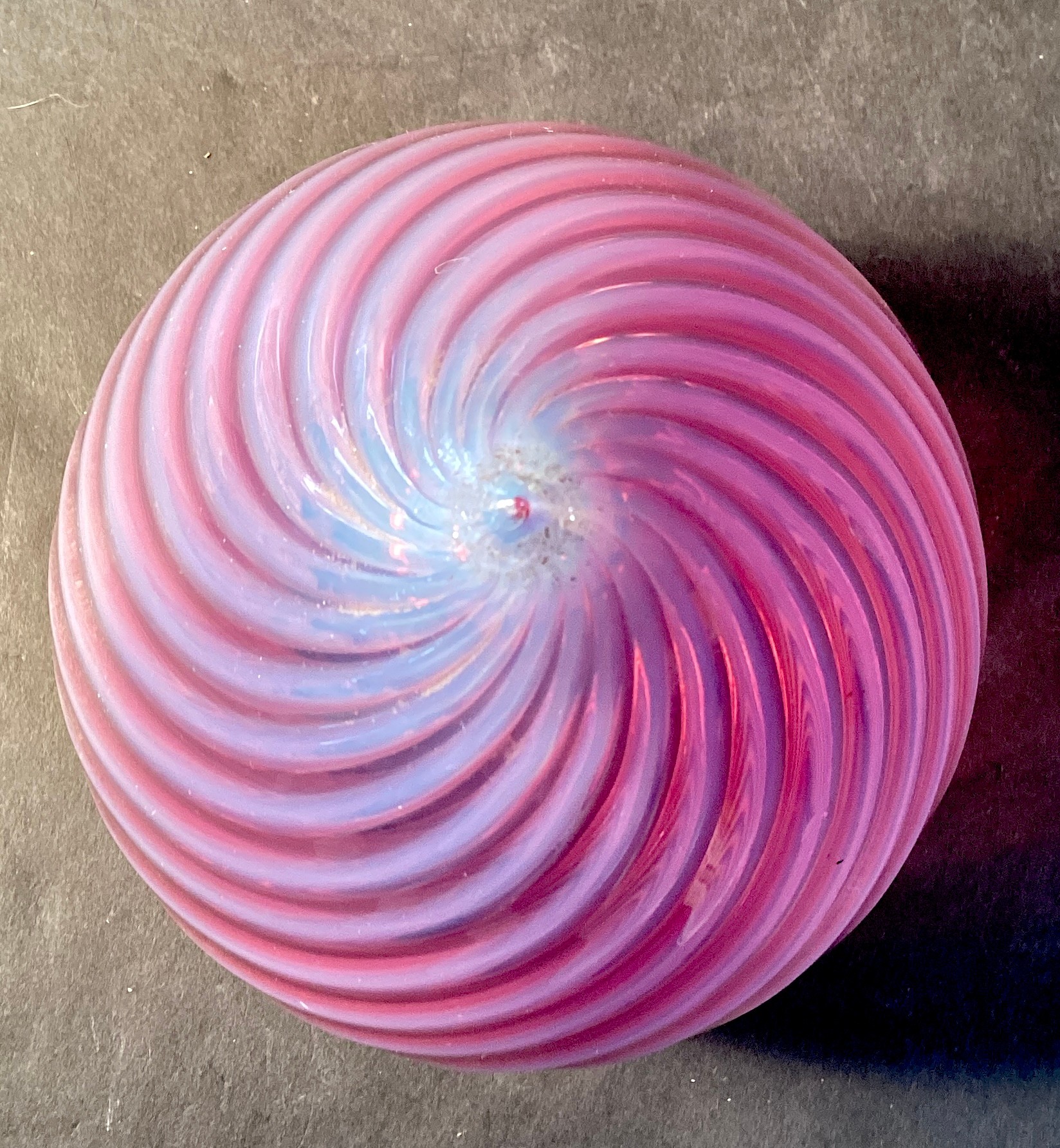 Here is a circa 1900’s cranberry opalescent swirl shade for a 3.25” fitter.