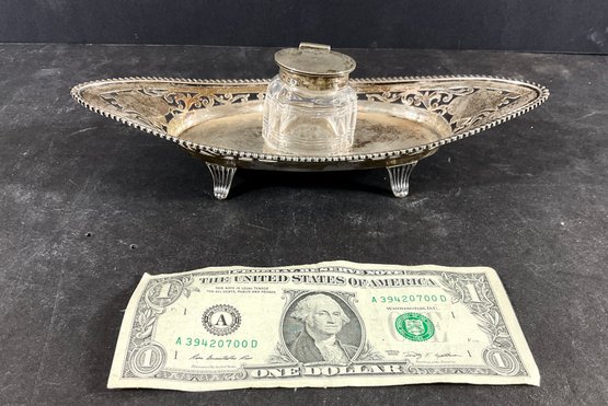Every silver piece is hallmarked, both the inkwell and the openwork tray. Very nice workmanship and design. The tray has articulated feet and only Ymir’s inkwell will fit the tray
