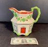 This is a very interesting and unusual Staffordshire milk pitcher. With an IV cottage design . Great colors.makes it very charming marked on the bottom with an incised C.