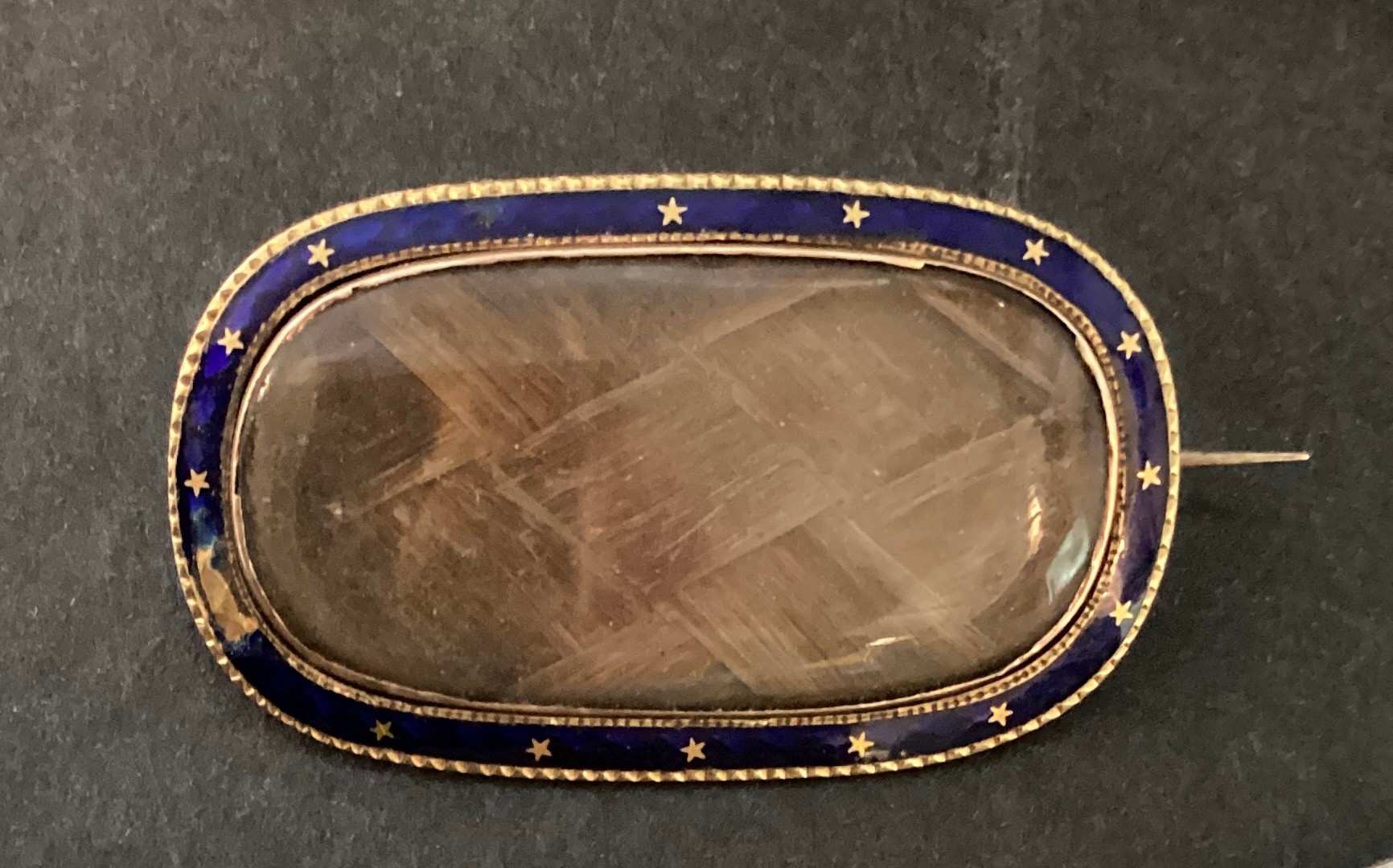An antique mourning brooch from the Victorian era that has been made in a gold filled setting.