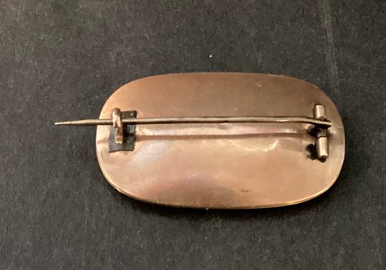 * this pin has a framework of blue enamel with small stars. Note there is a small chip of enamel missing from the lower left side.