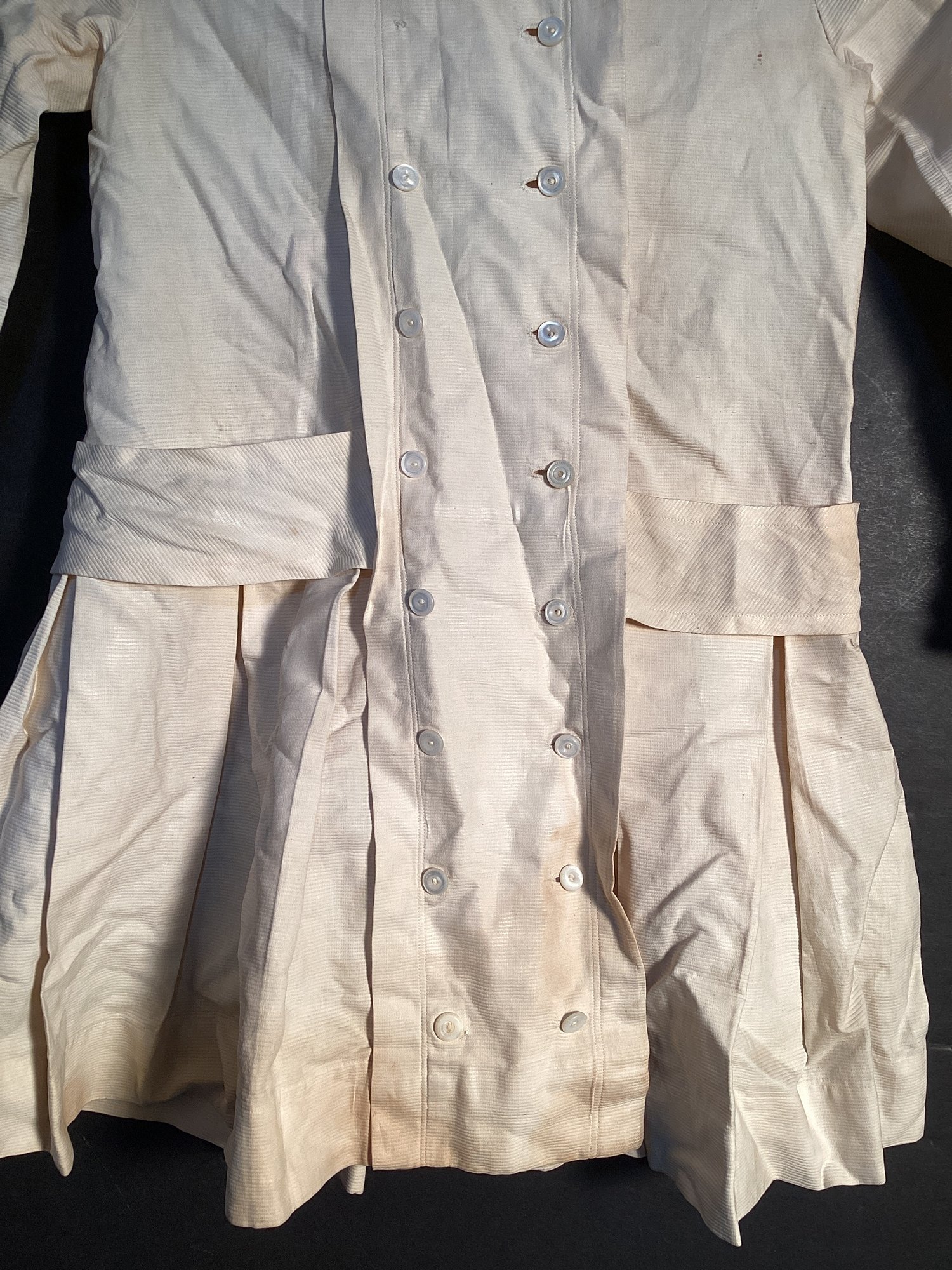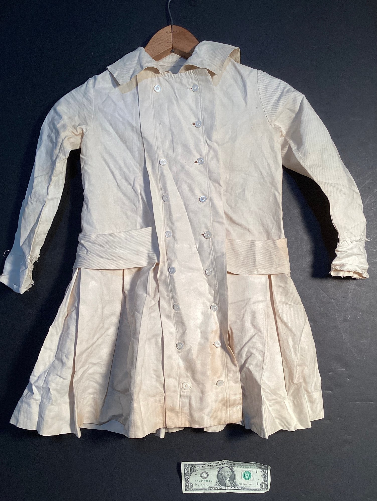 Here we have another handmade child’s with double breasted buttons, and low belt. * this dress is long sleeved and was well designed for the fortunate child of tat era.