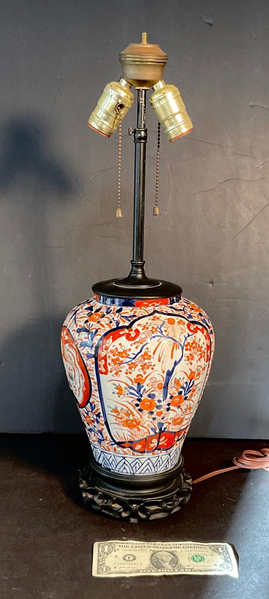 This is a very nice early Amari Ginger jar that has been electrified and made into a lamp. The ginger jar dates from the 1850s in Japan and is a very fine porcelain and that is all hand painted and a very good condition.