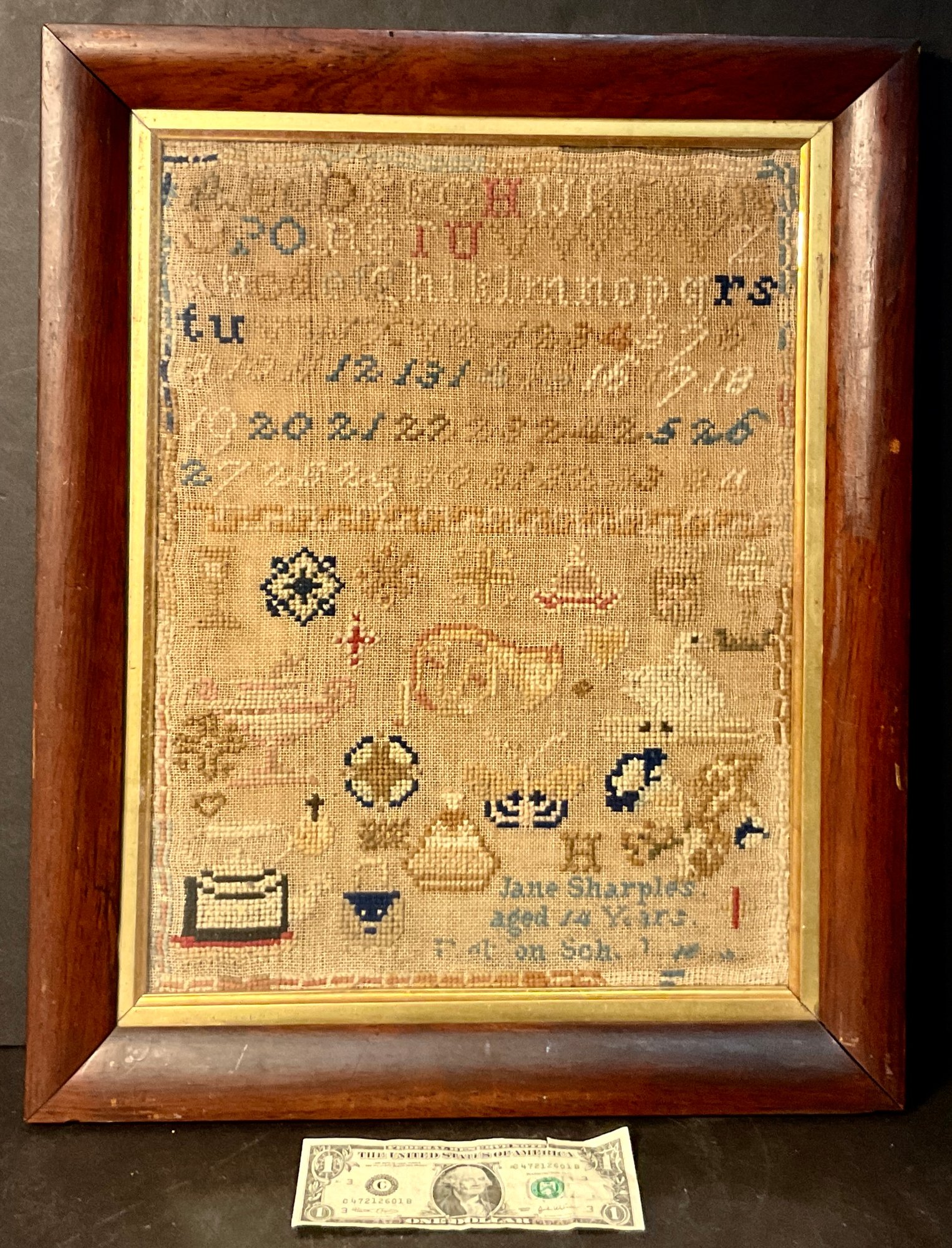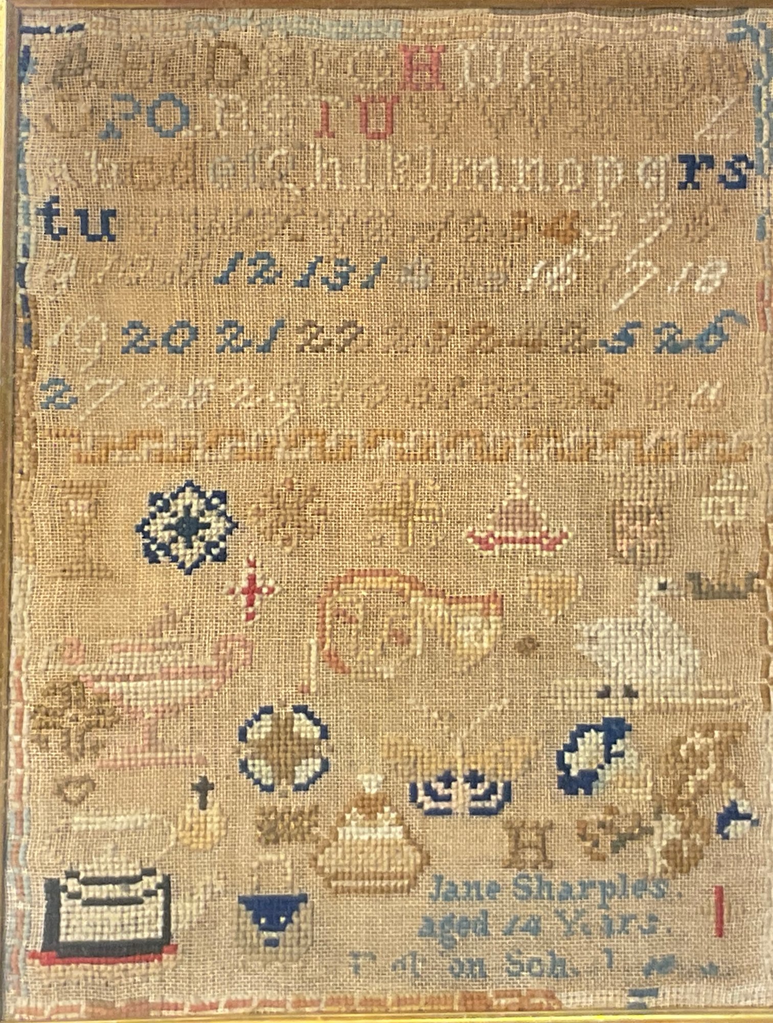 Possibly Dalton School Bath England. Hand made in the early 1800’s . The date is not visible. Good original color ( no restoration or embellishment) some wool missing, pretty easy restoration.strong linen base, good for festoration.