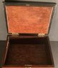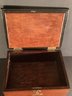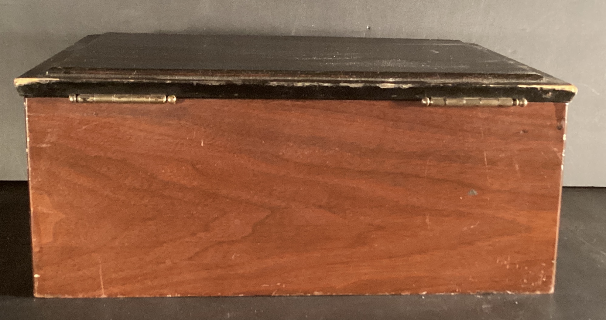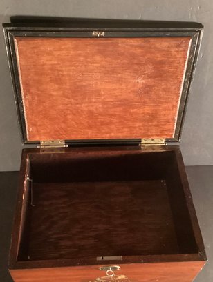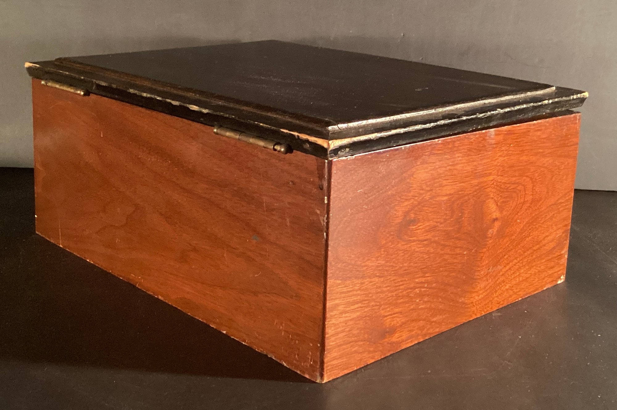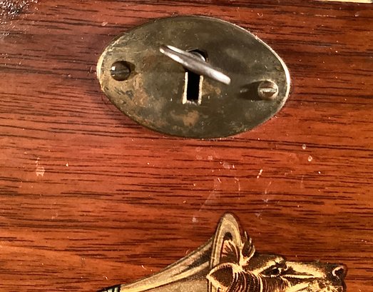 Very nice antique Magnavox mahogany advertising storage box with key. Magnavox logo on the front panel. Magnavox Oakland, California.