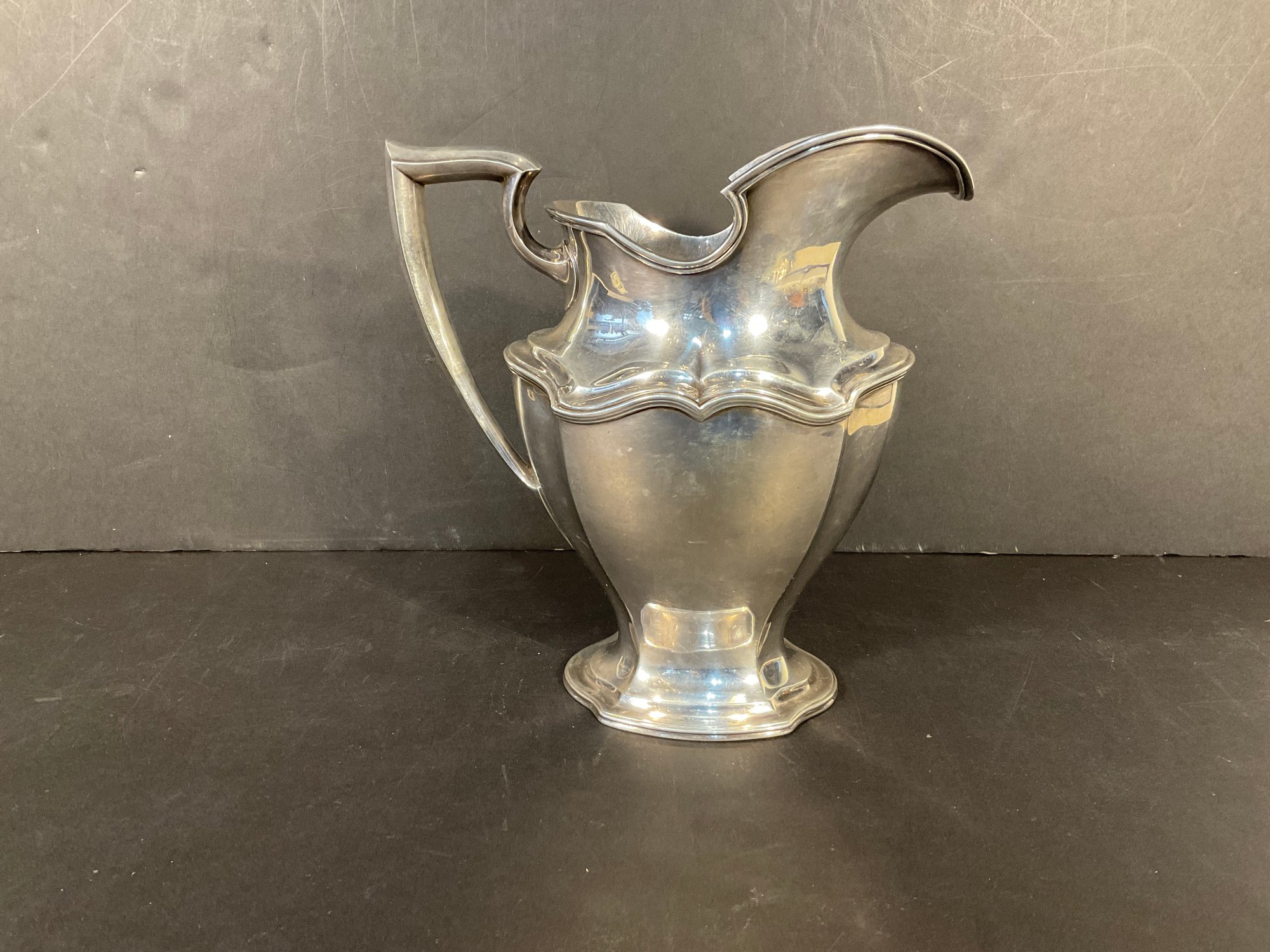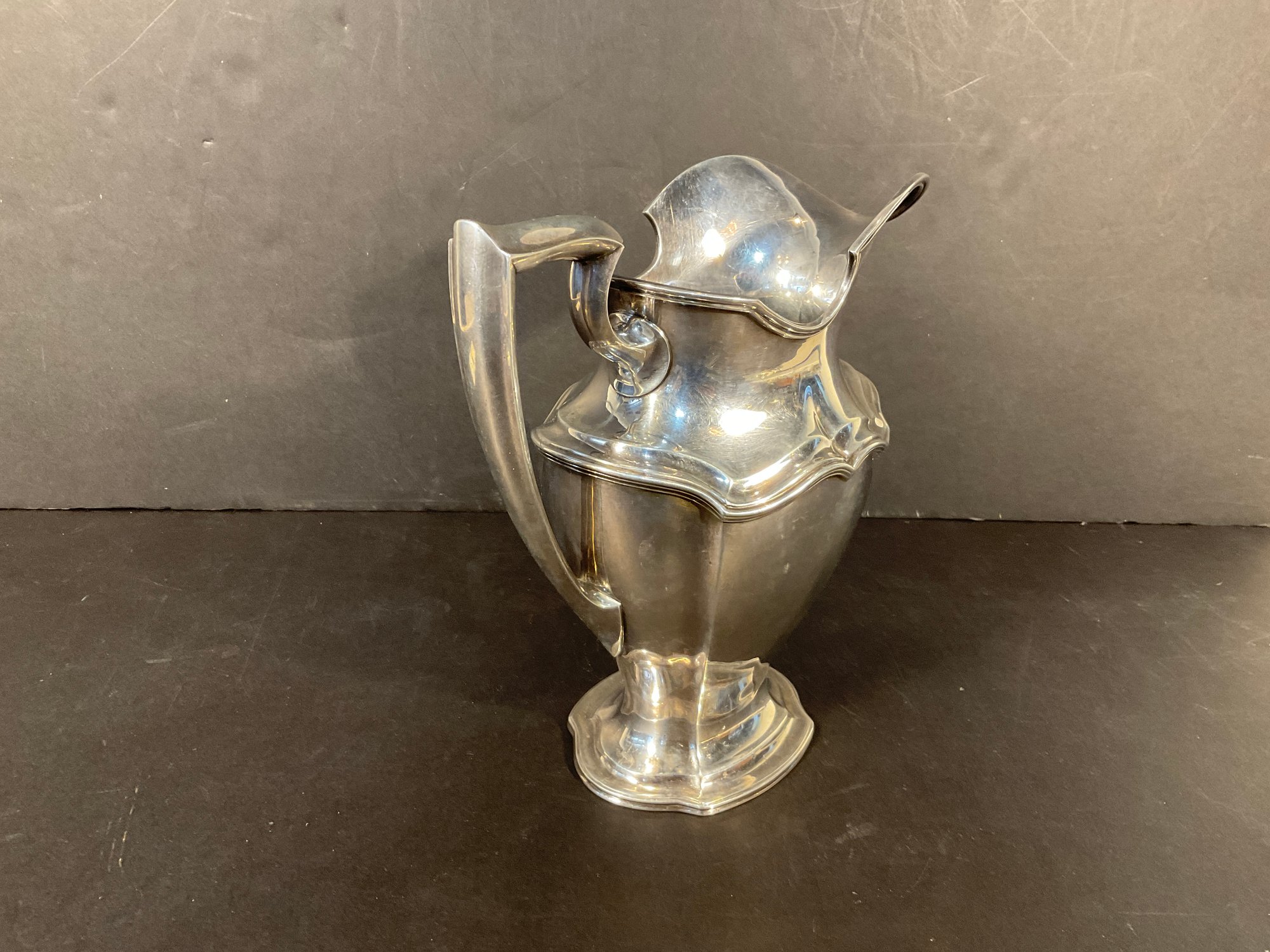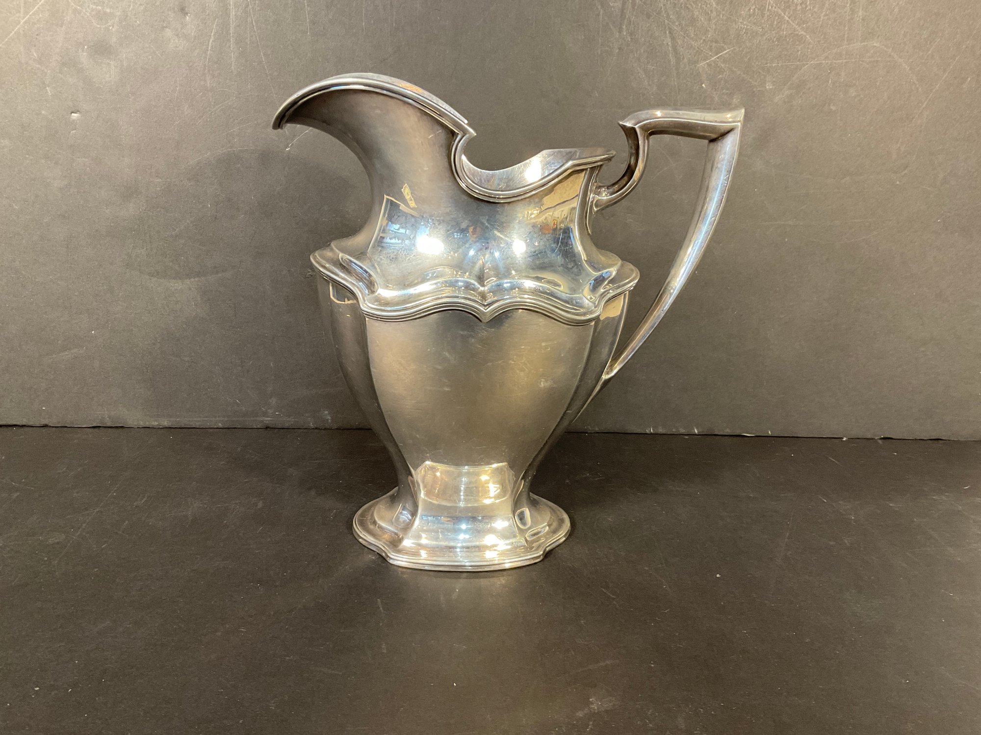 This is an excellent example of well-designed sterling silver from the early 1900s. Made by Read Barton company fully marked on the bottom # 560 4 pint water pitcher.