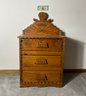 This tramp art chest is very unusual. It has a name on the crest Edith and is all handmade out of sparrow lumber probably in the turn of the century 1900 - 1910 made of American pine wood. This will work as a bed side chest or in a living room. Very versatile.
