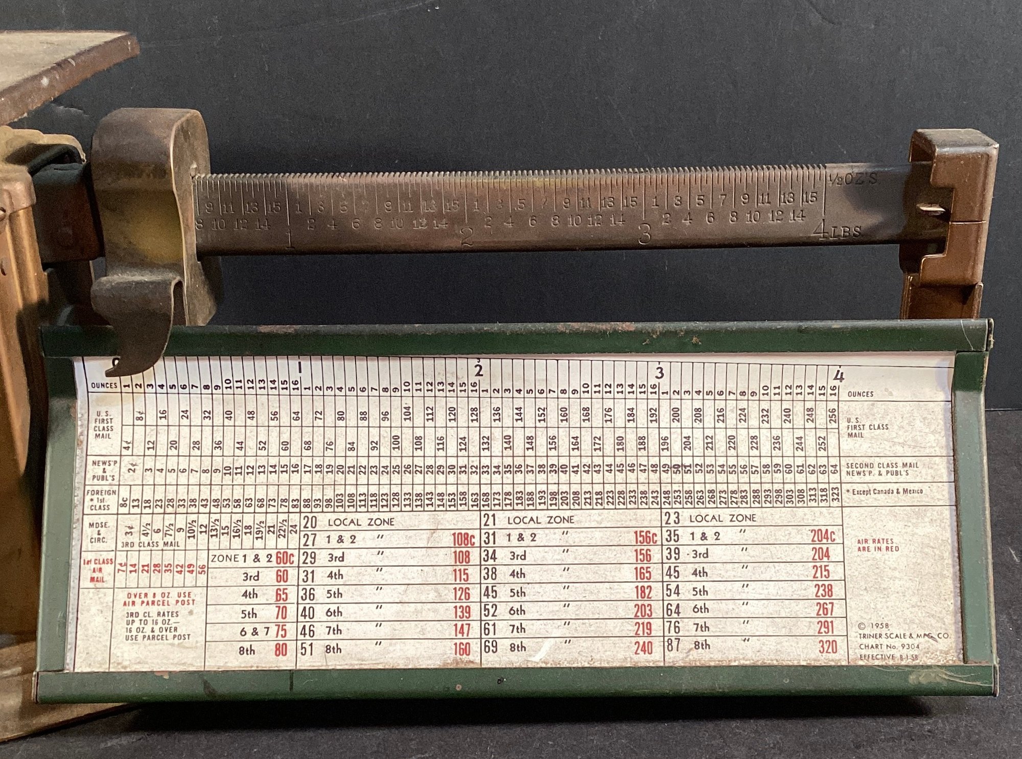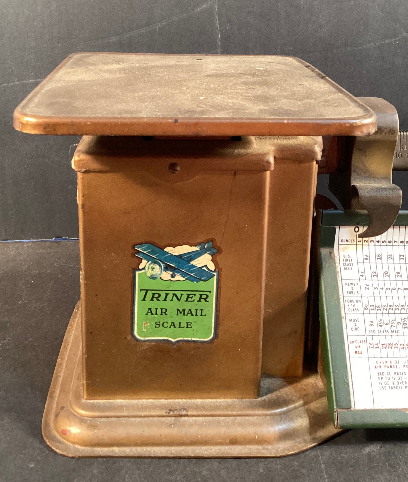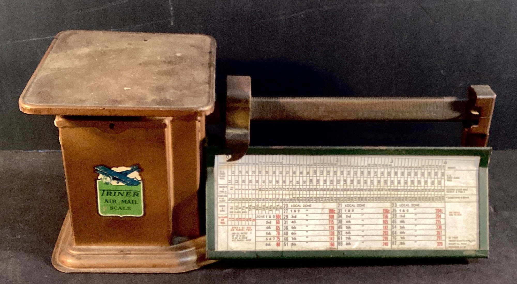 Here is an antique TRINER all steel/air-mail scale that measures up to 4 pound products.