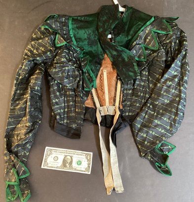 If this were to be worn, this would be meant for a very small individual size 0/1 and again, the material is quite old thus is in delicate condition.