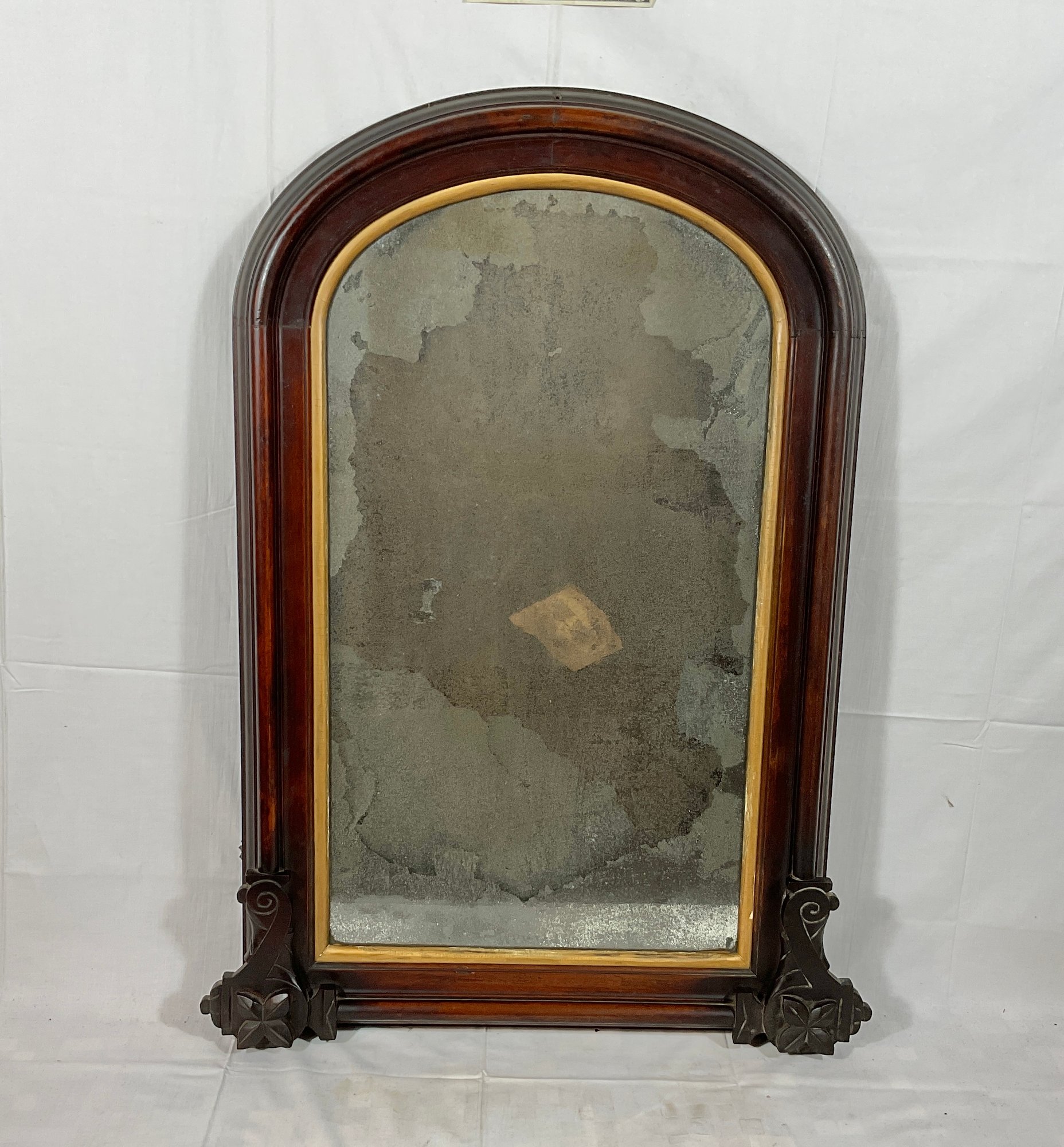 American solid black walnut Victorian mirror with some nice carving at the corners. Mirror is totally original and should be repalced at some point. Very good quality