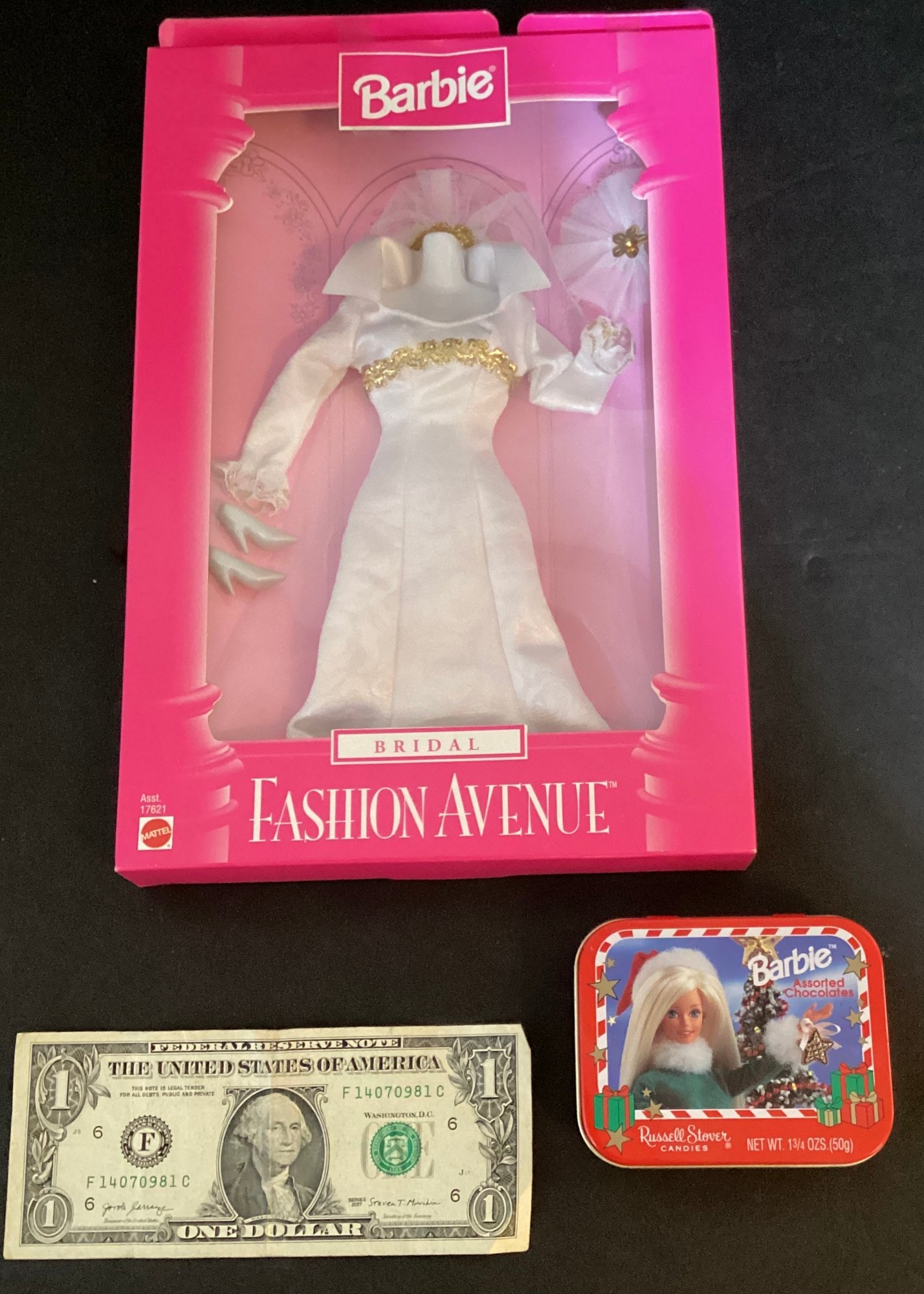 * a Barbie bridal fashion Avenue outfit. Comes with shoes, headdress, etc. never opened never used.