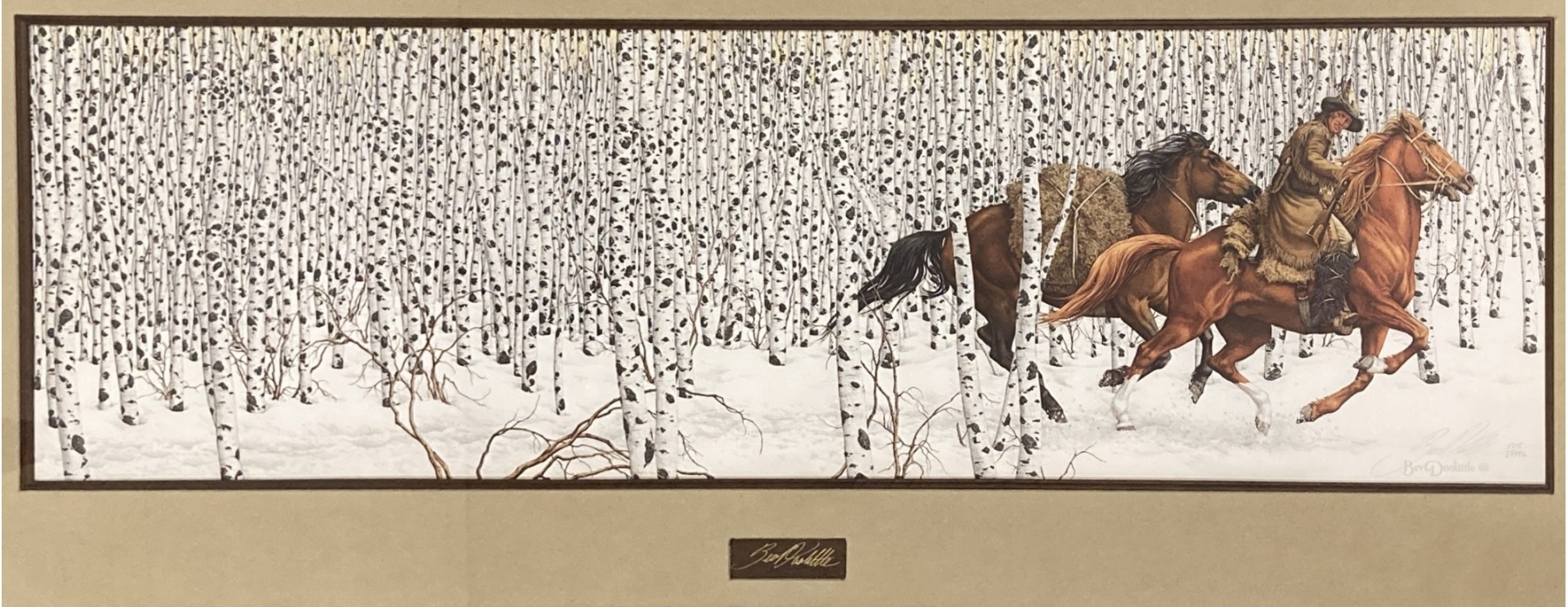 Selling a Bev Doolittle signed and numbered limited edition lithograph print with paperwork by The Greenwich workshop. Printed in 1989. Framed and matted under glass. Signed and numbered lower right 5808/69,996. Also signed on wooden plaque with gold pen separate from the print. A very cool piece of art.