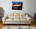 Absolutely New. Purchased but never used, also has matching small size loveseat . Very nice quality and construction.