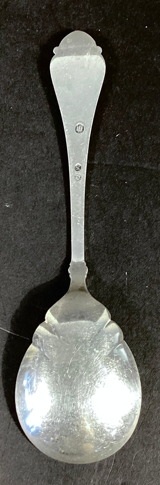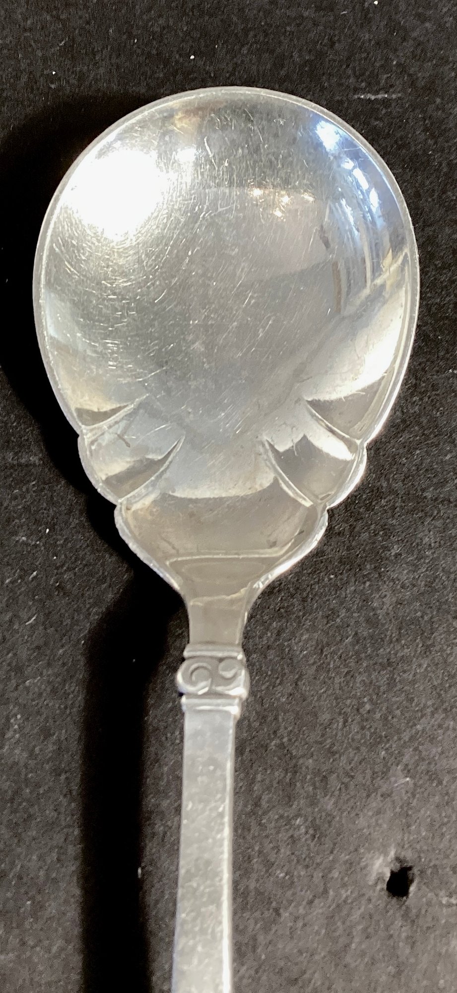A very attractive 826 silver spoon that is hand hammered with a gently shaped scallop design at the top of the bowl.