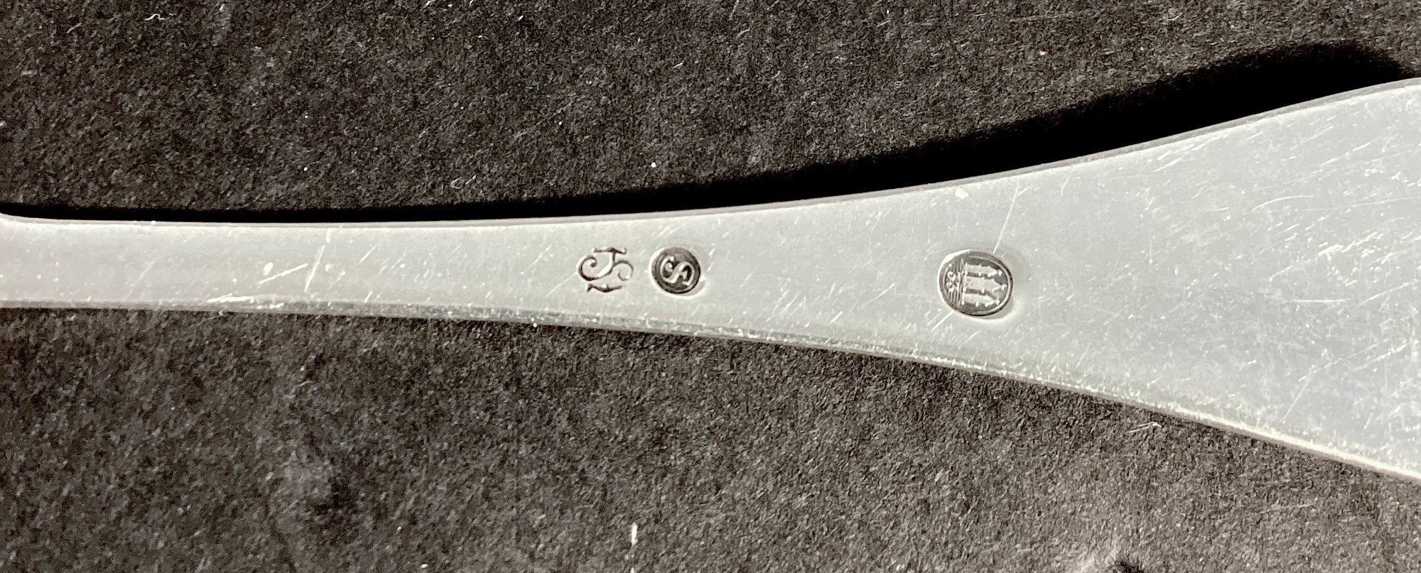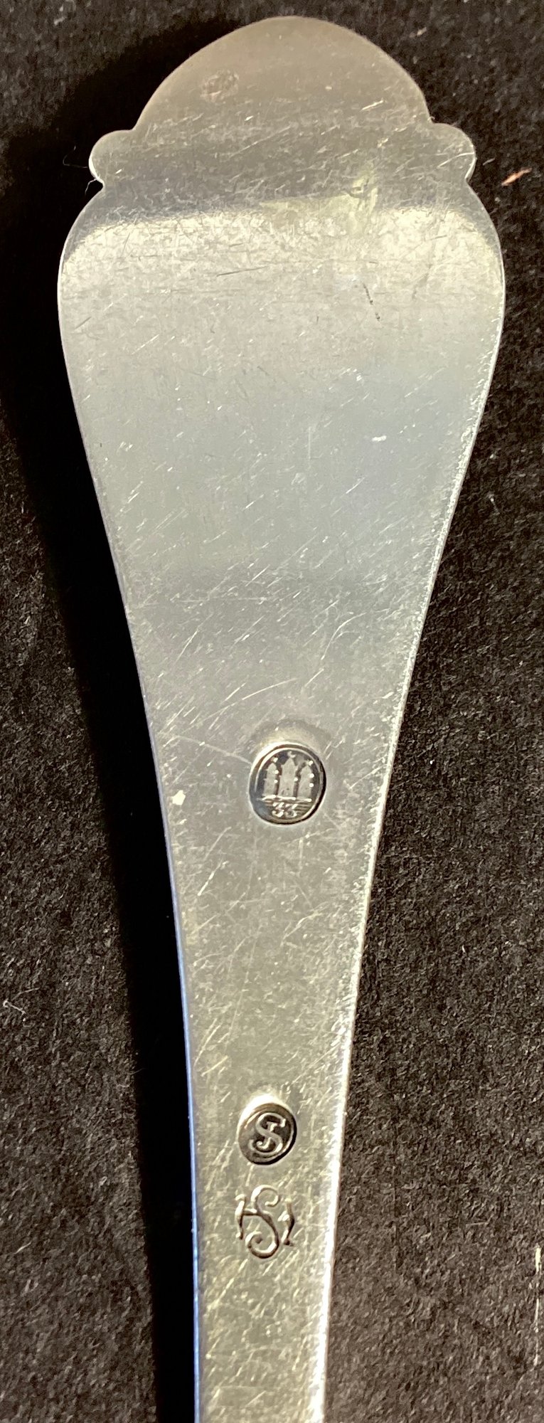 This spoon has markings on the back of the handle showing origin, with the front of the handle showing the hand hammered design.