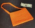 Here we have a great mid-century beaded handbag. The color is a rocking atomic orange, and was made in British Hong Kong and designed by ‘Lady Ellen’.