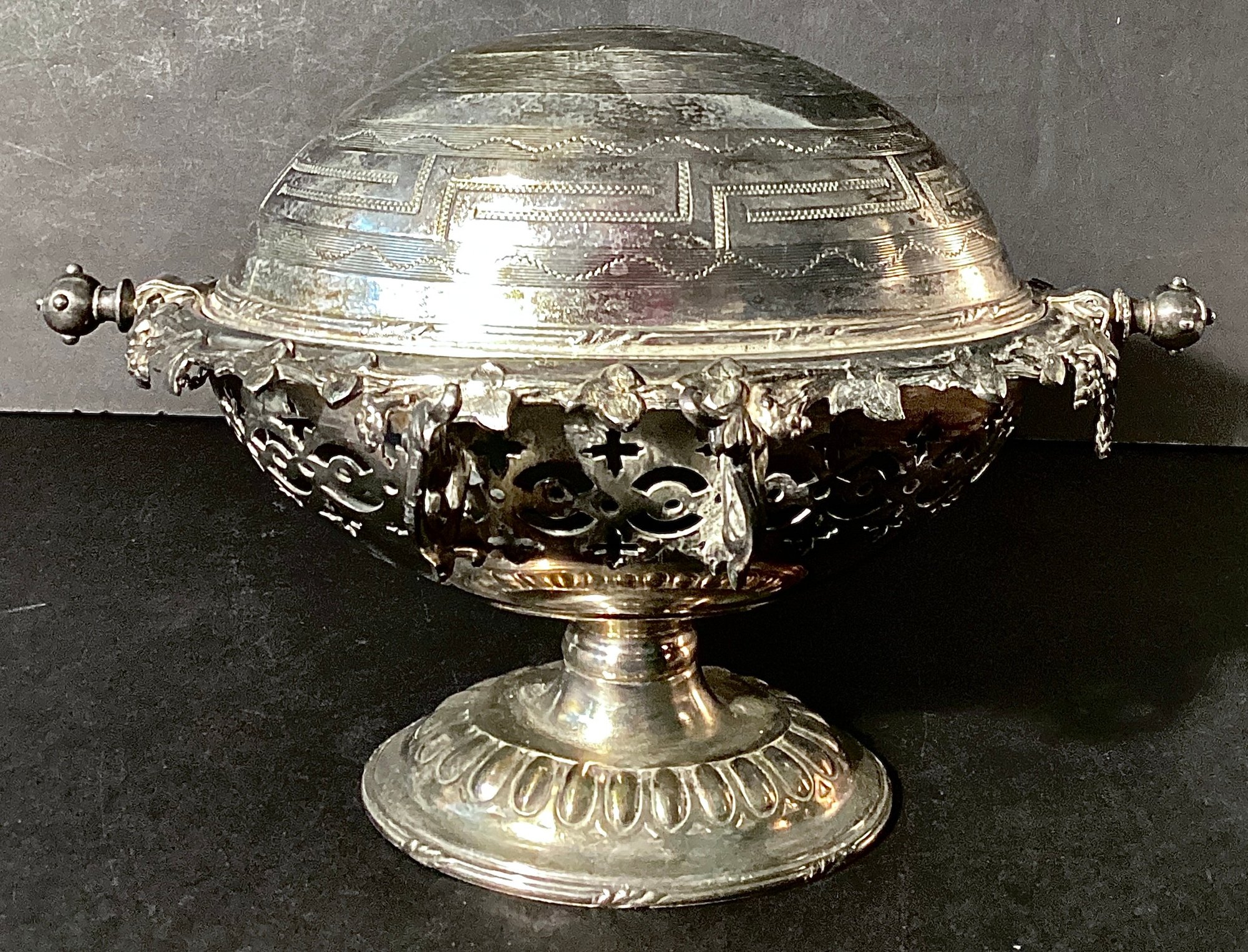 Here is a lovely 1800 silver-plate butter dish with a curved ‘roll top’ lid.