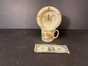 This is an early child’s plate/bowl Mickey Mouse characters signed on the back, the cup is Betrix Potter bunny, kins. both in good condition