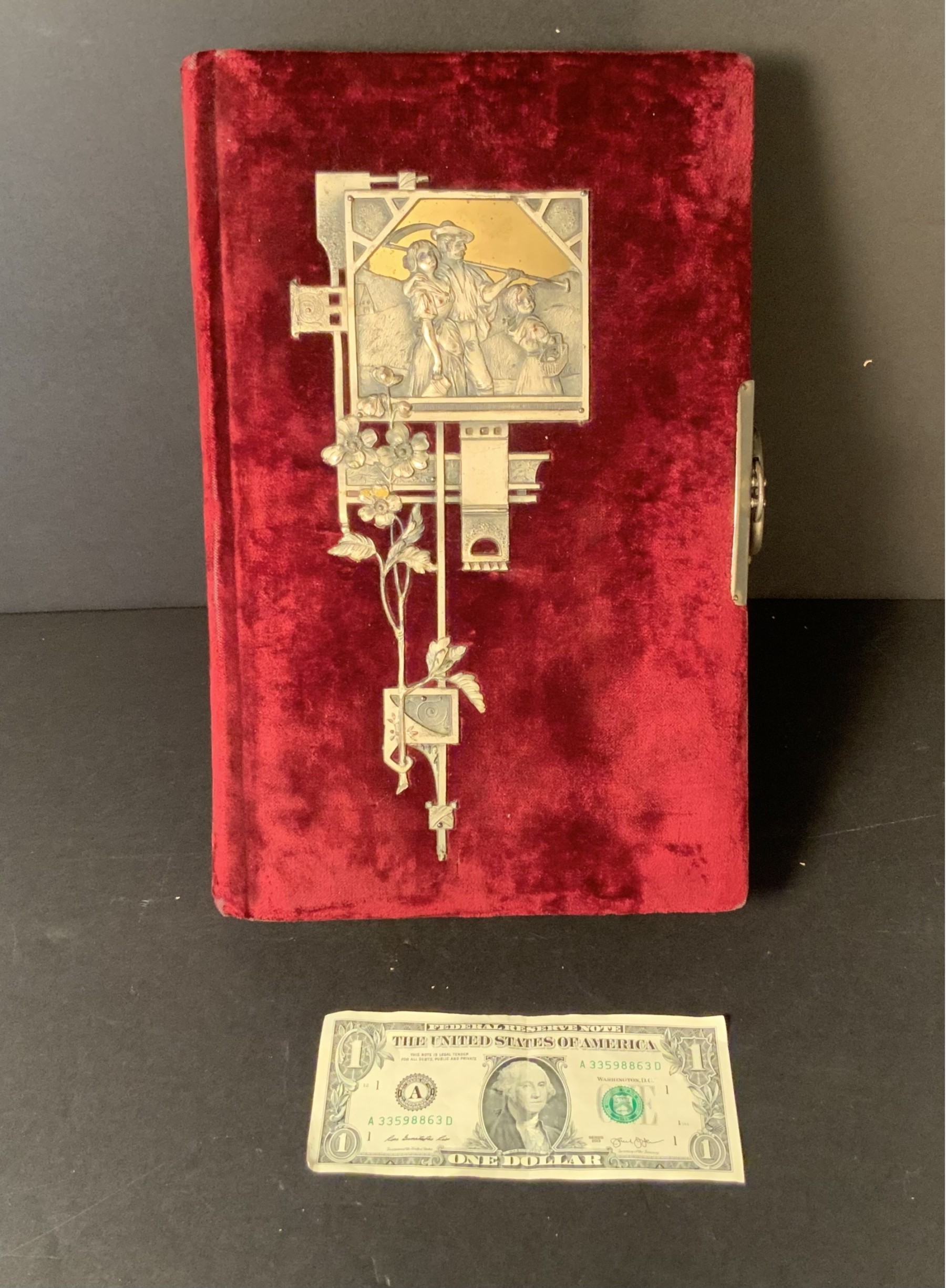 The album itself is in remarkable condition. Very cool red velvet cover with cast metal decoration. All very nice condition