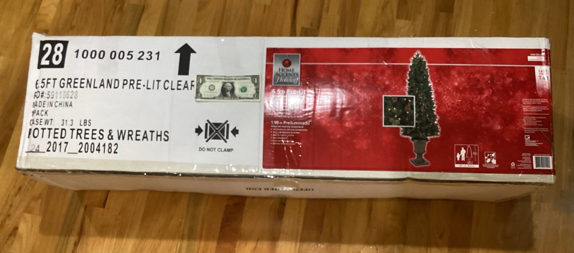 Here we have a 6’5” pre lit Christmas tree that has remained in the box and never opened.