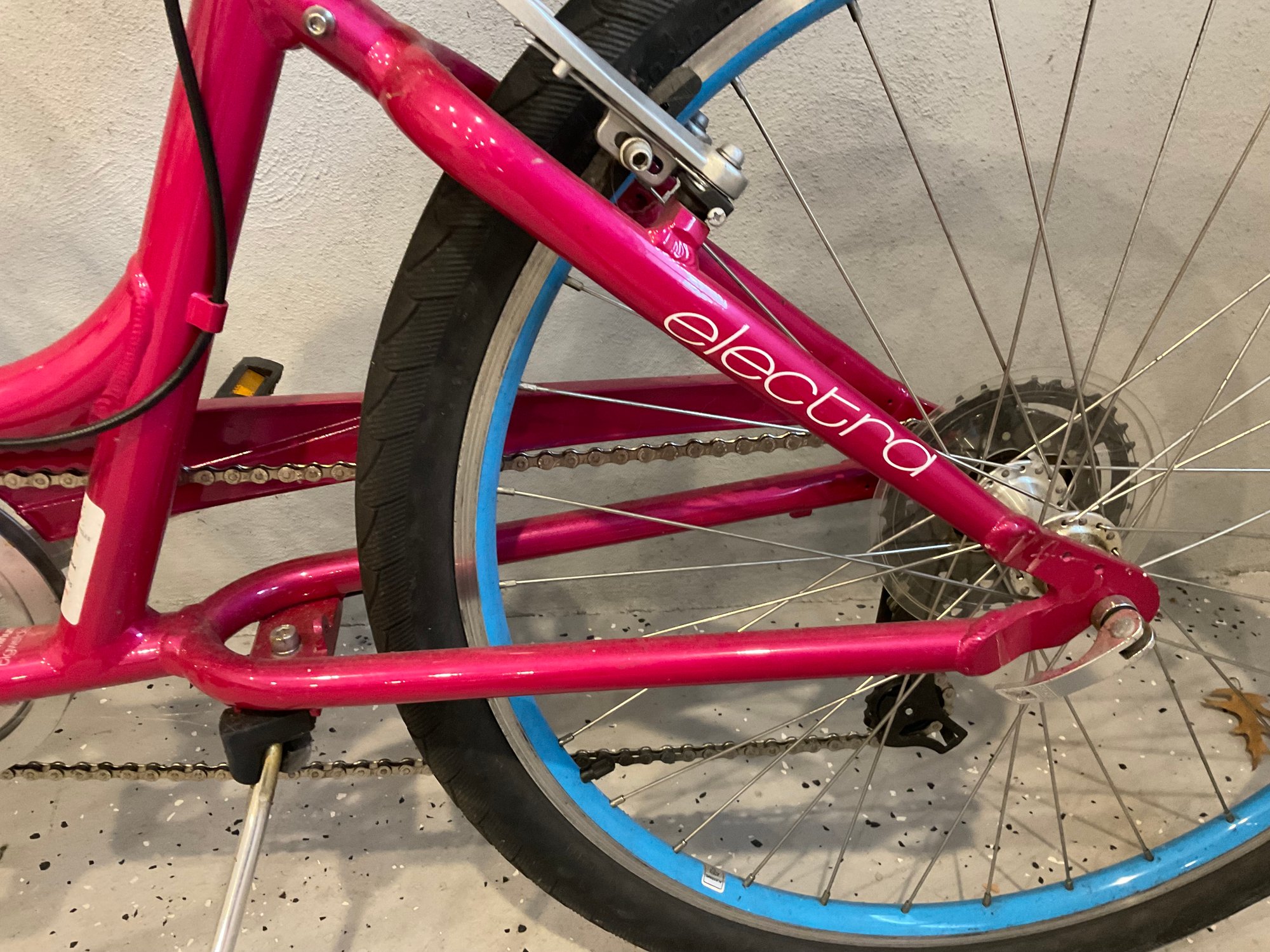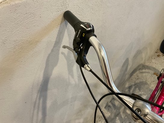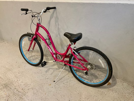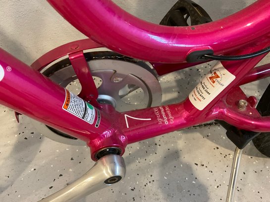 This bike was purchased several years ago and never used, but once. There are very minor abrasions to the paint from storing it. Comes with a helmet.