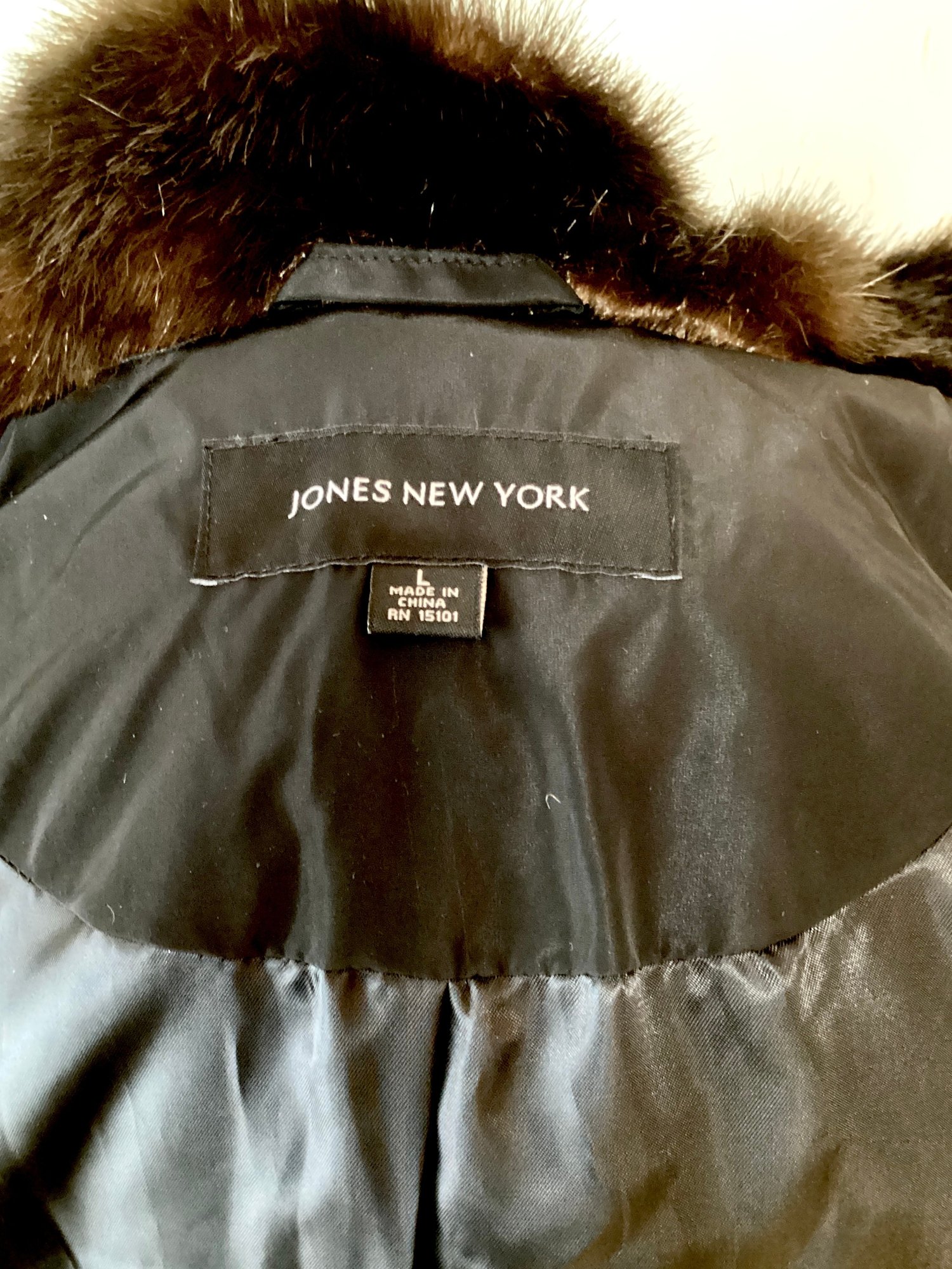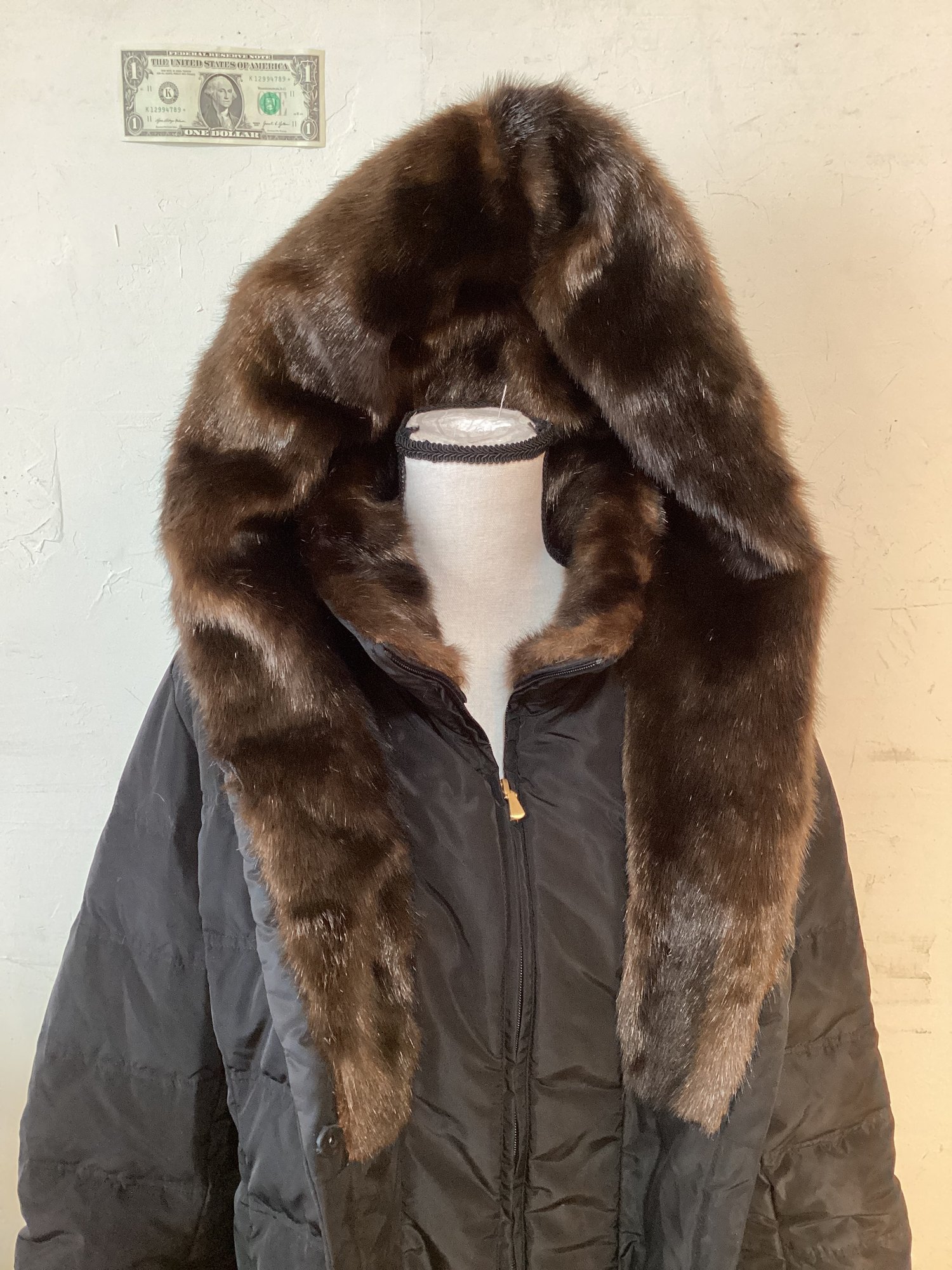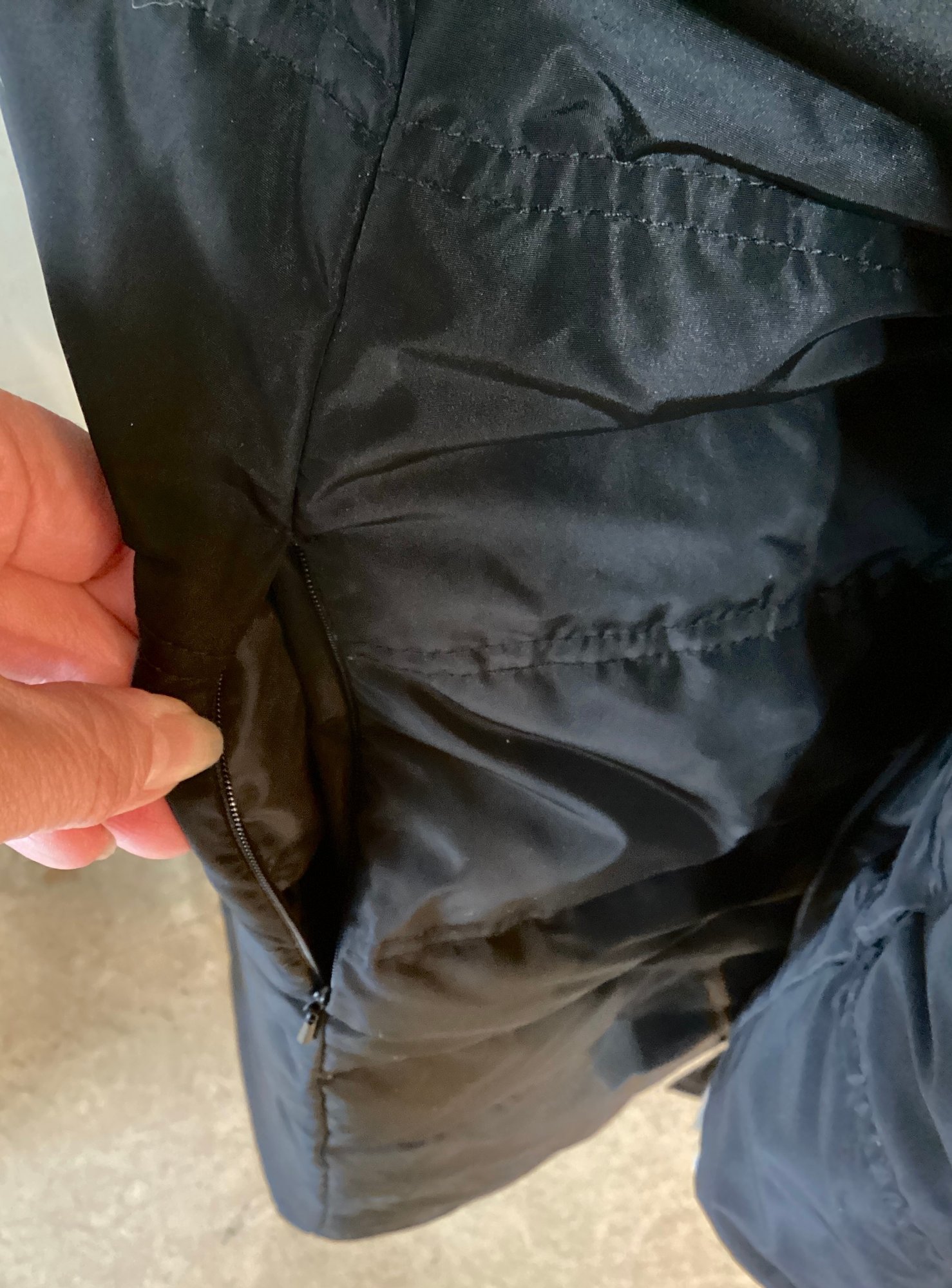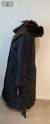 * zipper pockets and faux fur accents on coller and inner lining of hood.