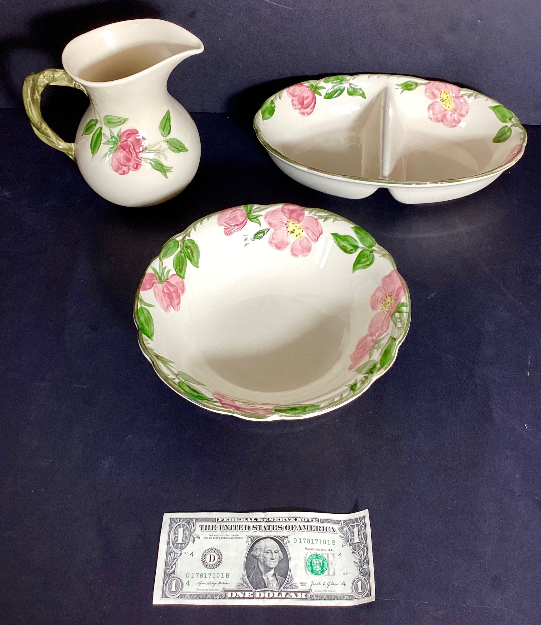 Here we have 3 pieces of Franciscan Desert Rose tableware for your consideration.